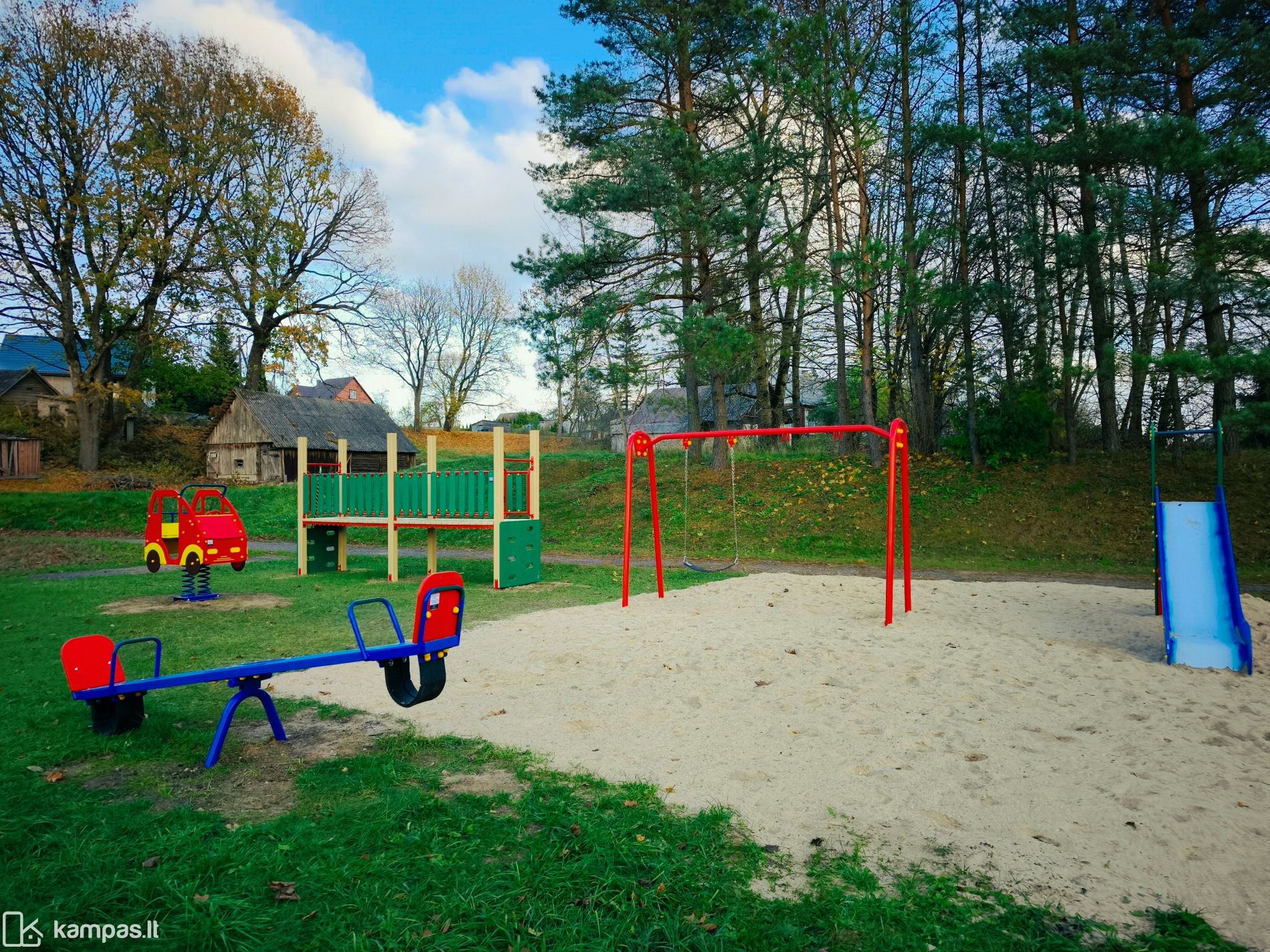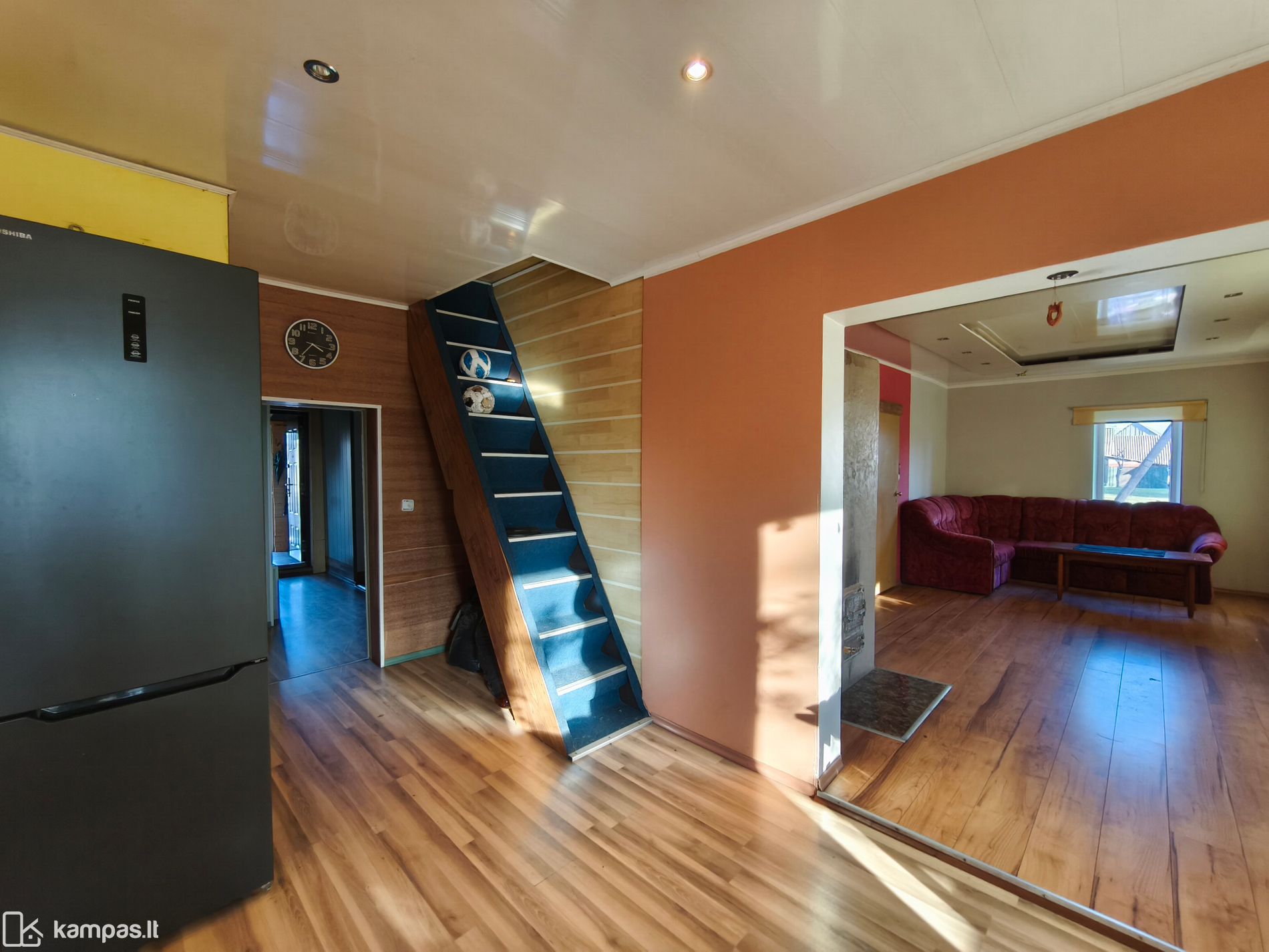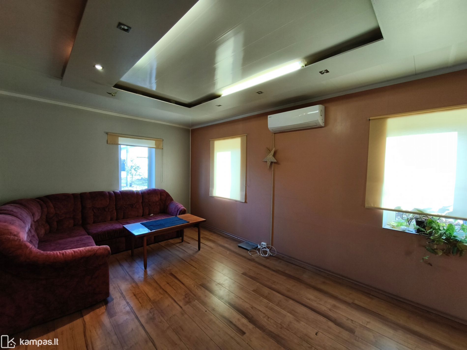 - 142kv.m. vieno aukšto rąstinis namas (5 kambariai, svetainė, erdvi virtuvė, didelis vonios kambarys (vonia, dušo kabina, tualetas);
