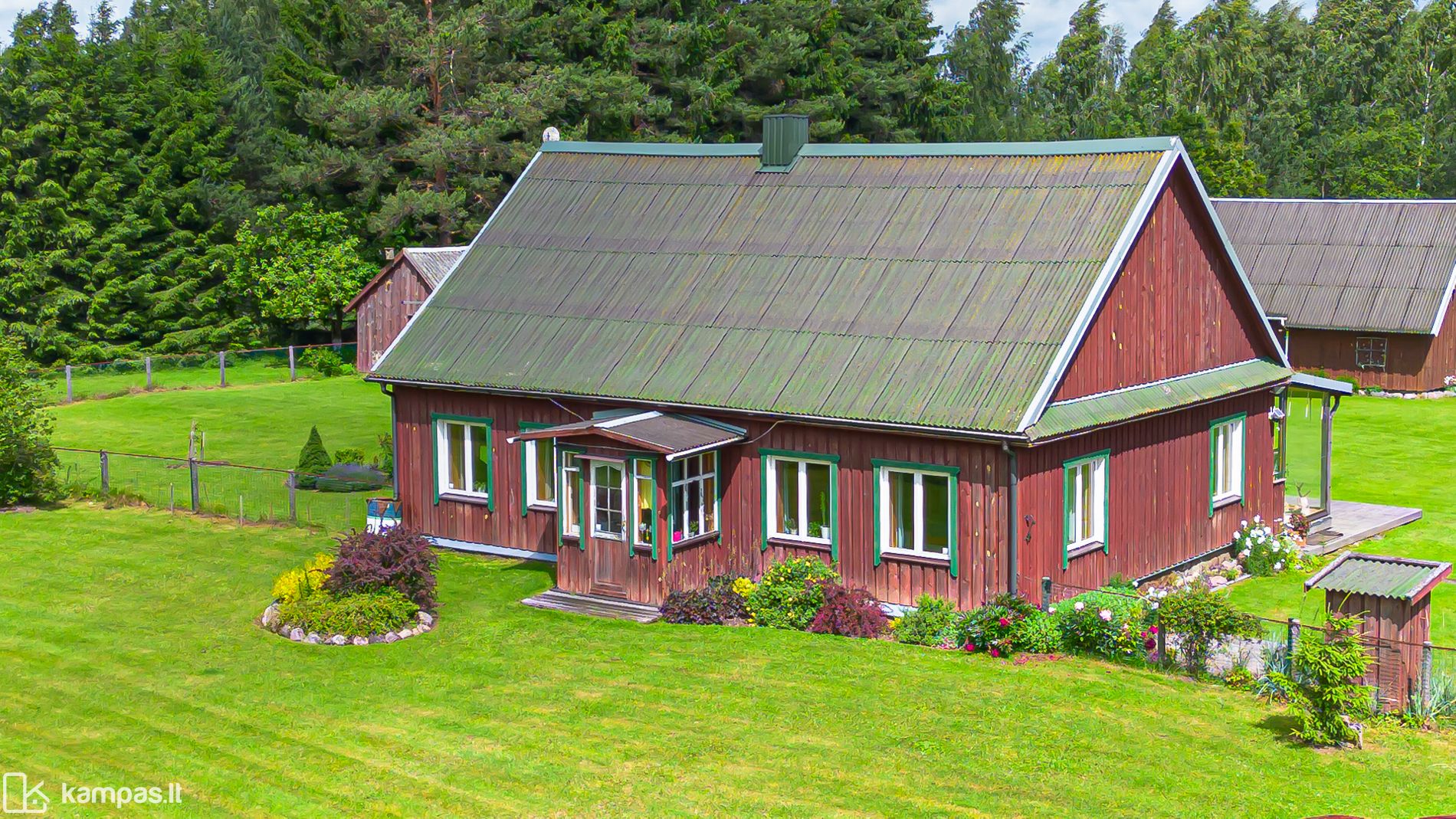 Sodyboje yra rąstinis namas, pirtis ir ūkiniai pastatai. Sodybai priklauso didelis žemės sklypas, kuriame yra ir nuosavo miško. Artimiausi kaimynai yra atokiau nuo sodybos, todėl galėsite mėgautis ramybe ir privatumu.