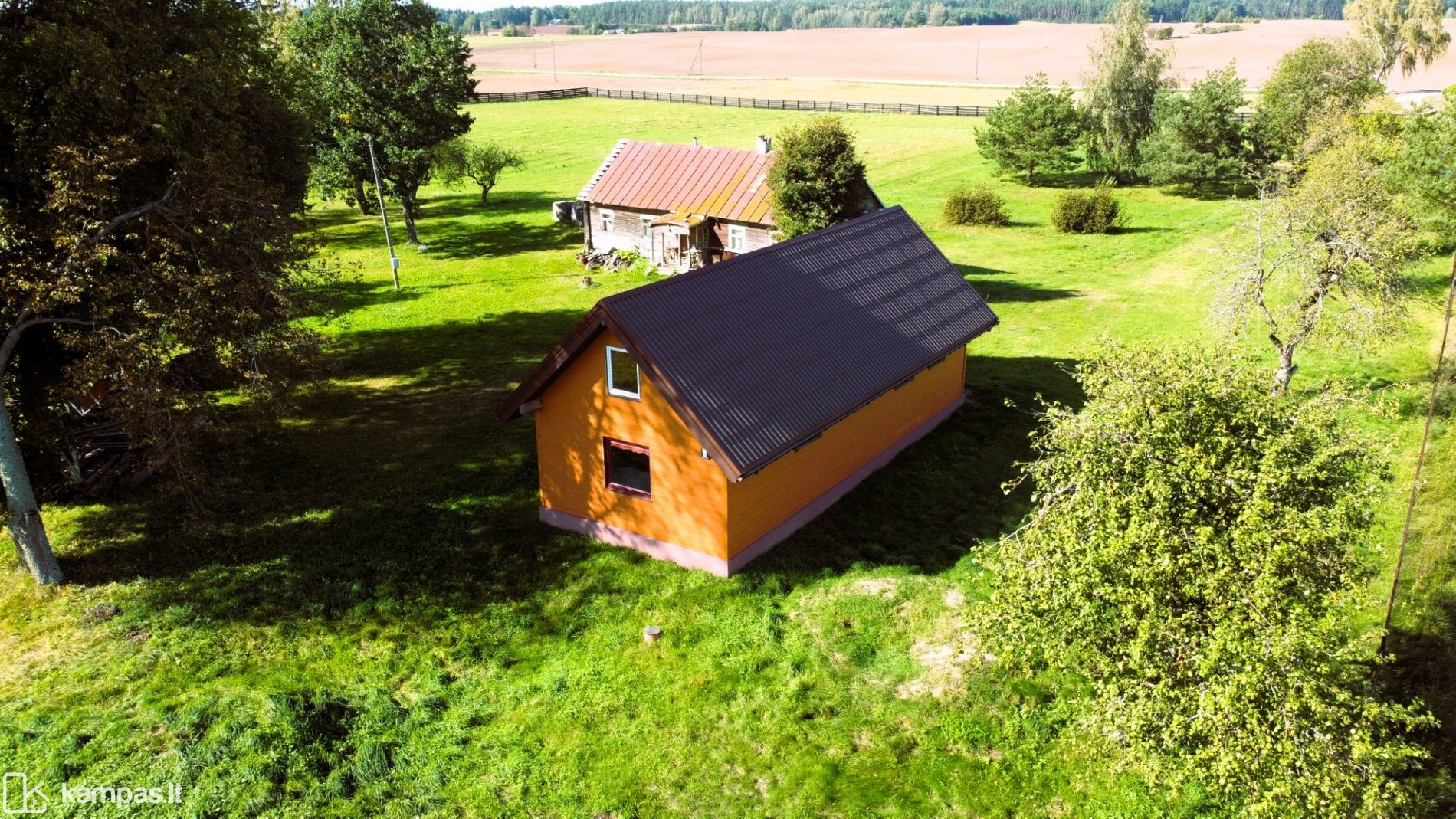 Varėnos r. sav., Pagirių k. parduodamas gyvenamasis namas su ūkiniu pastatu ir erdviu 54,20 a sklypu. Taip pat kartu parduodamas ir besiribojantis 1,9751 ha žemės ūkio paskirties sklypas.