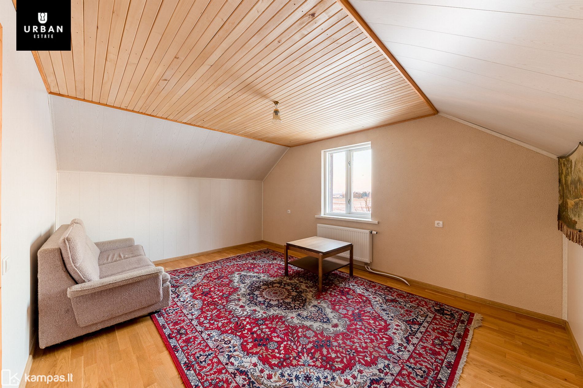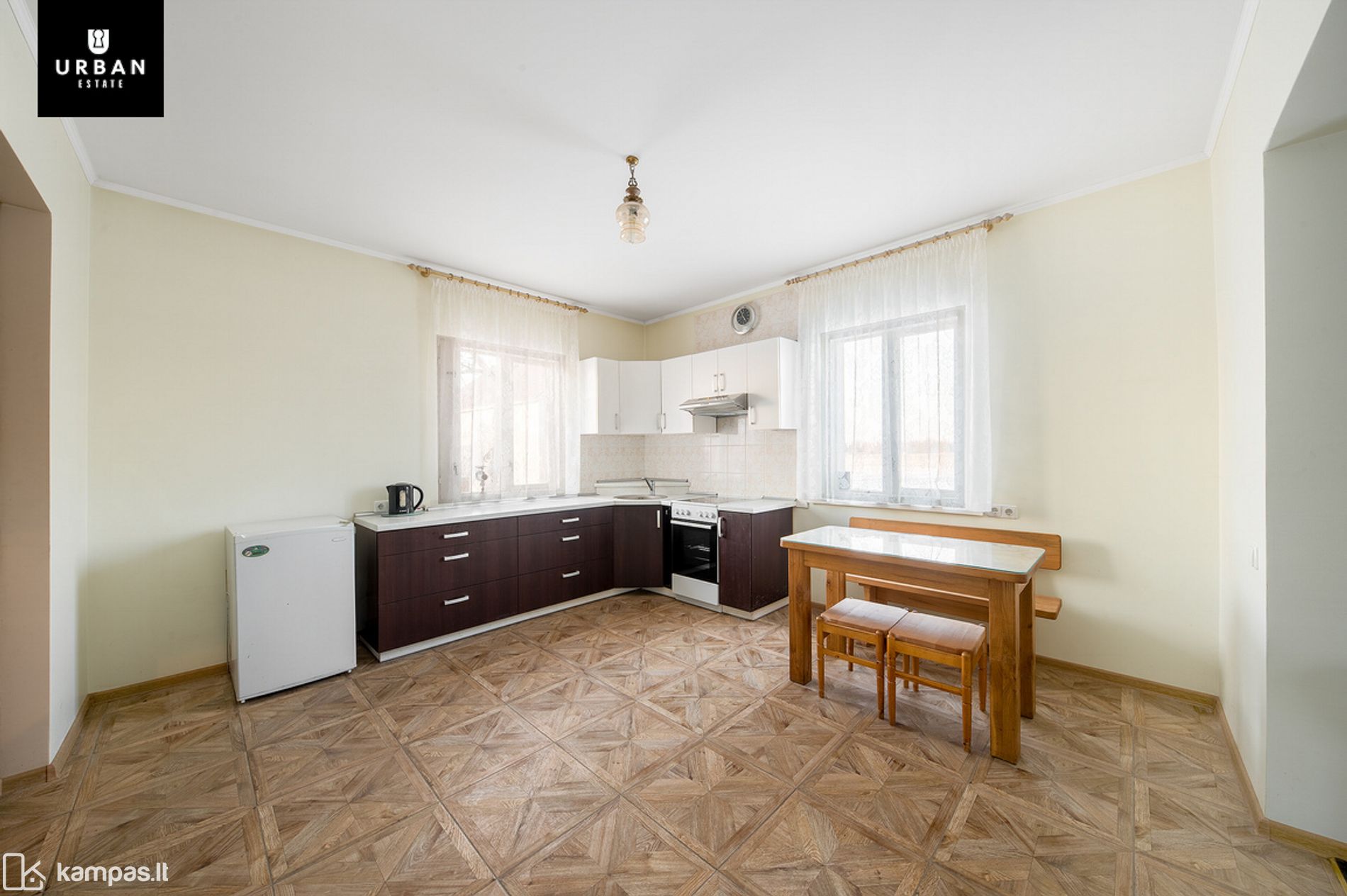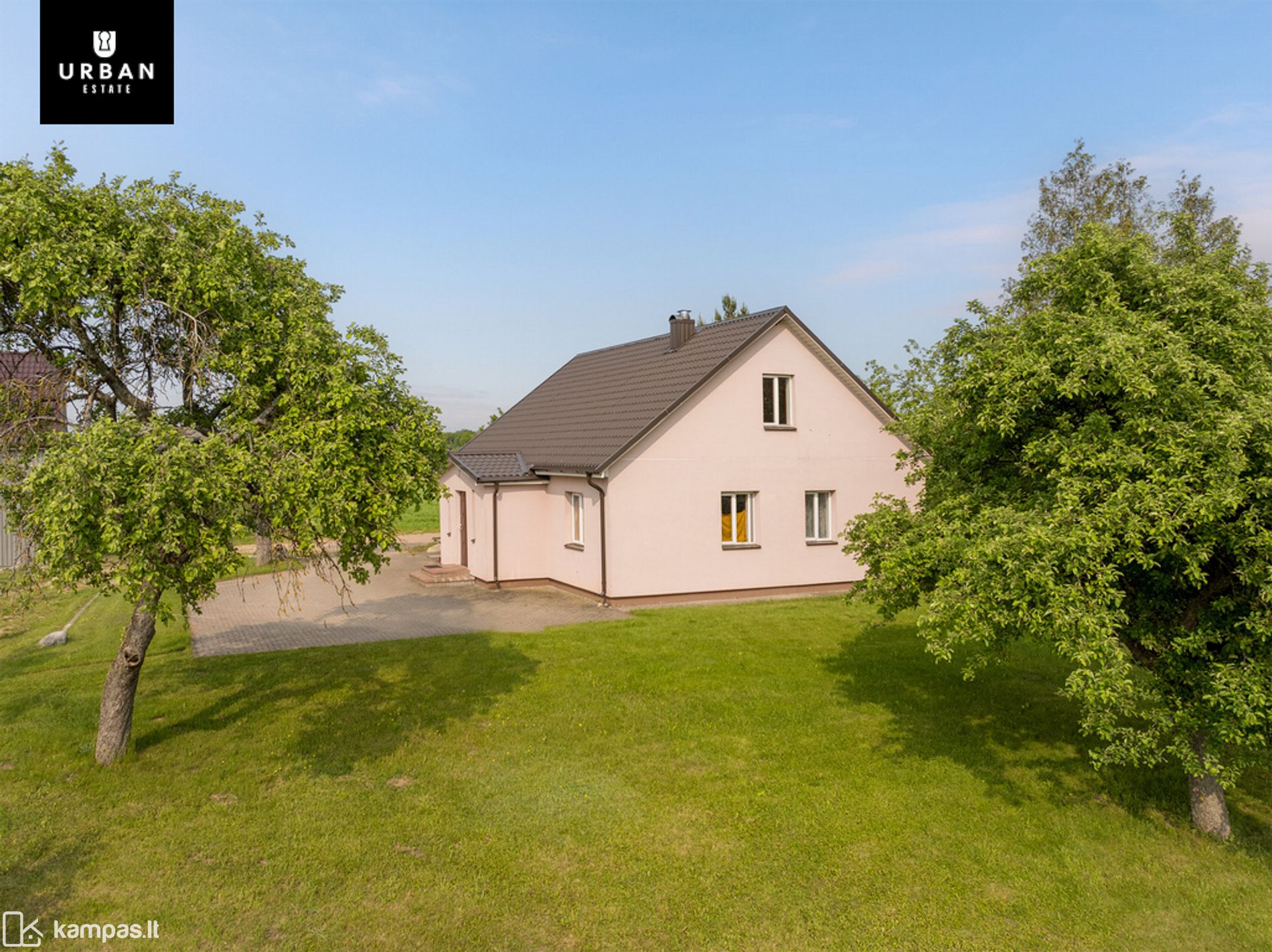 Namas 150 kvadratų. Pirmame aukšte erdvi virtuvė su svetaine, miegamas, holas, katilinė, erdvus WC su dušo kabina. Antrame aukšte holas ir du miegamieji.