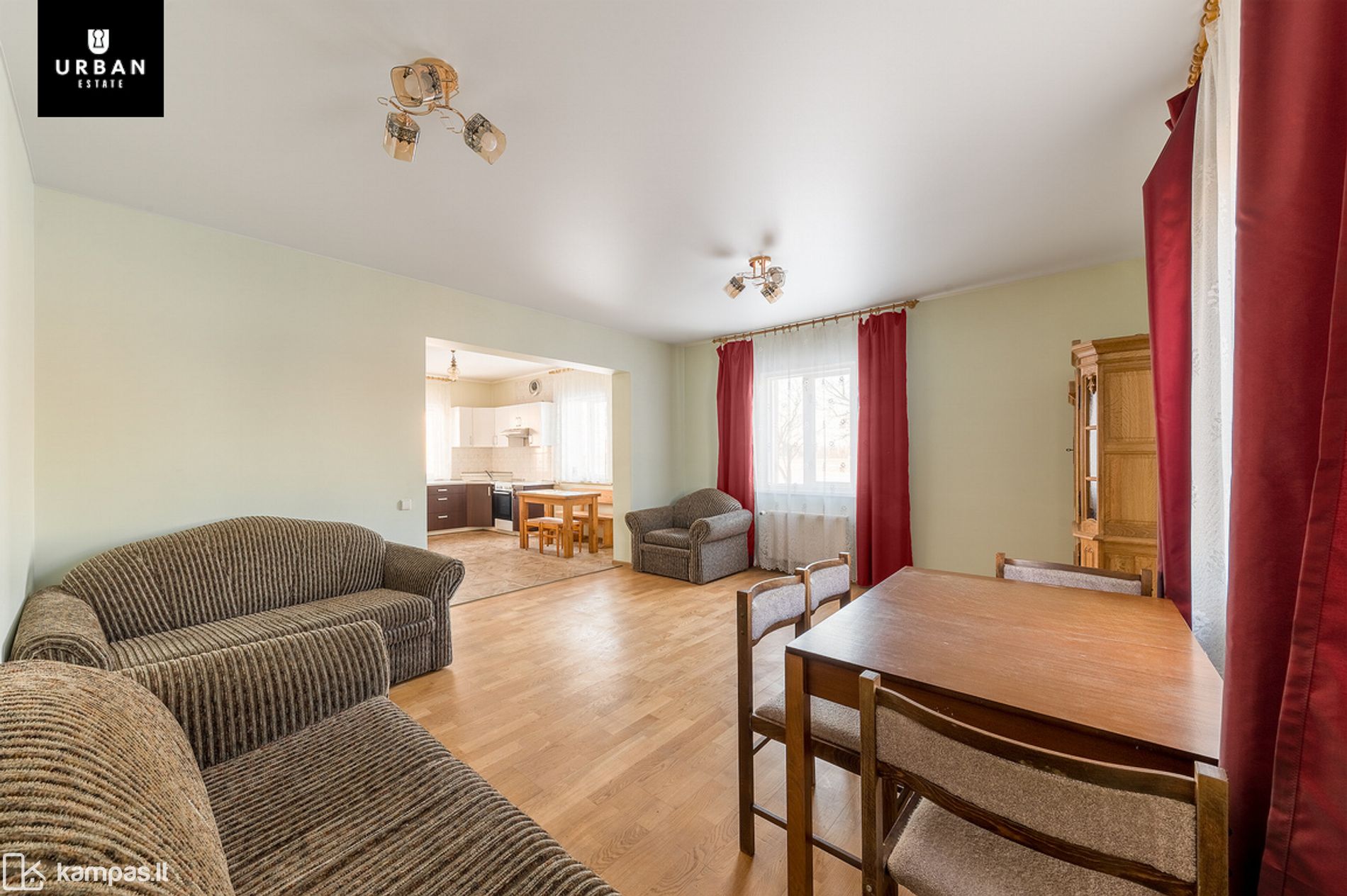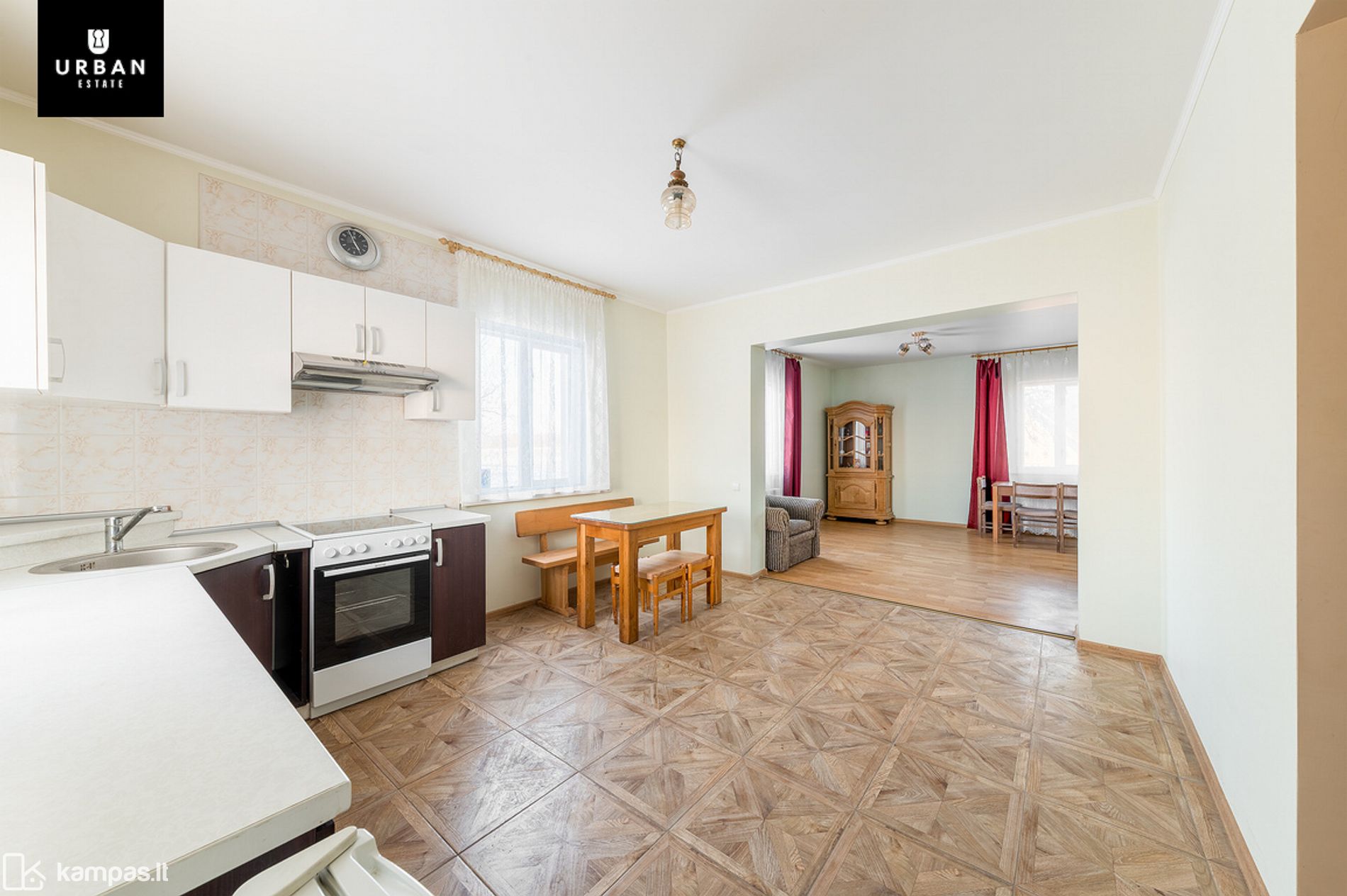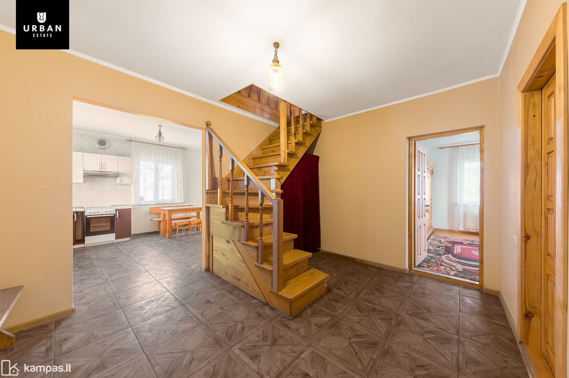 Namas 150 kvadratų. Pirmame aukšte erdvi virtuvė su svetaine, miegamas, holas, katilinė, erdvus WC su dušo kabina. Antrame aukšte holas ir du miegamieji.