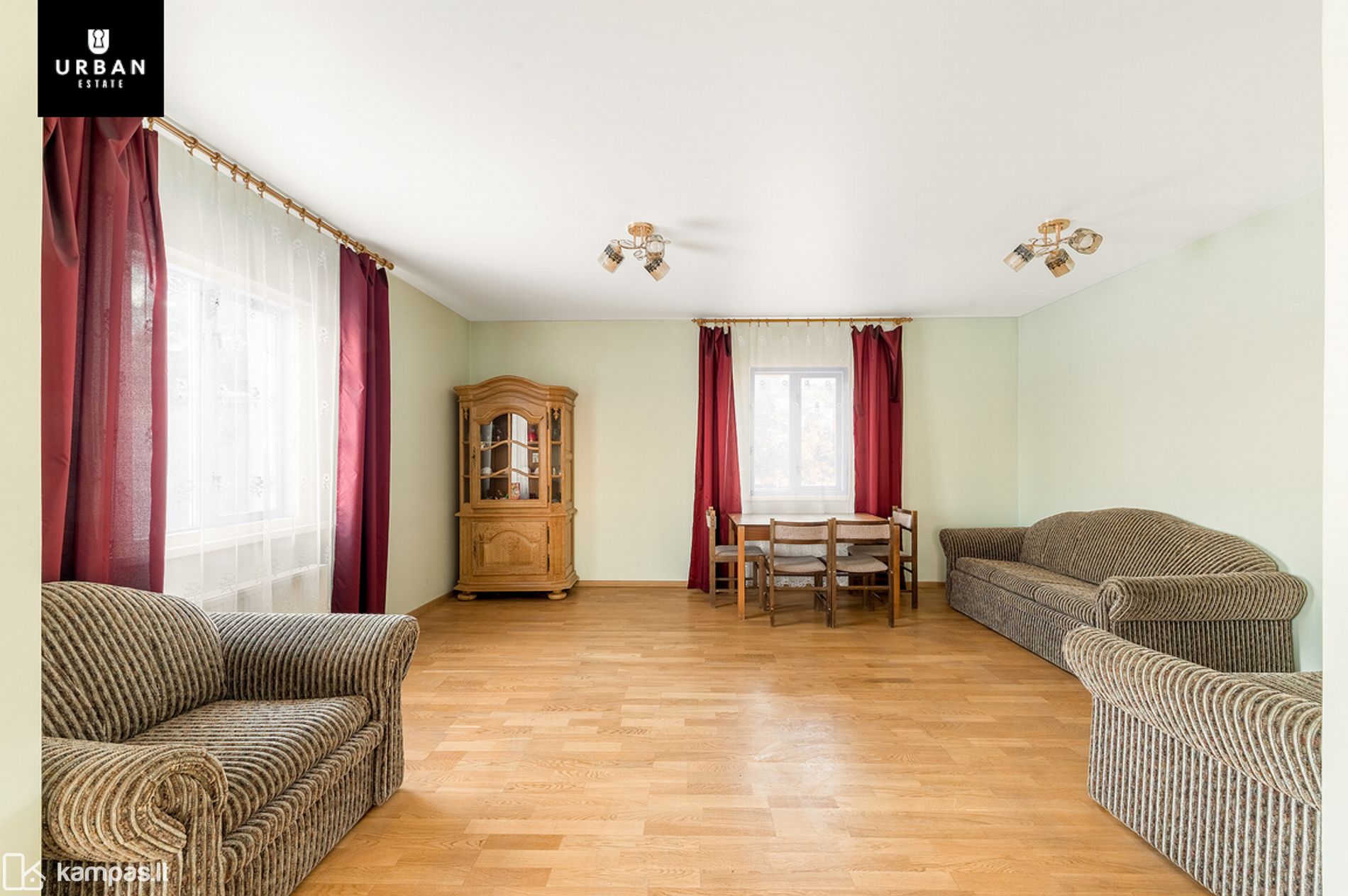 Svetainėje ir miegamuose kambariuose medinės grindys.