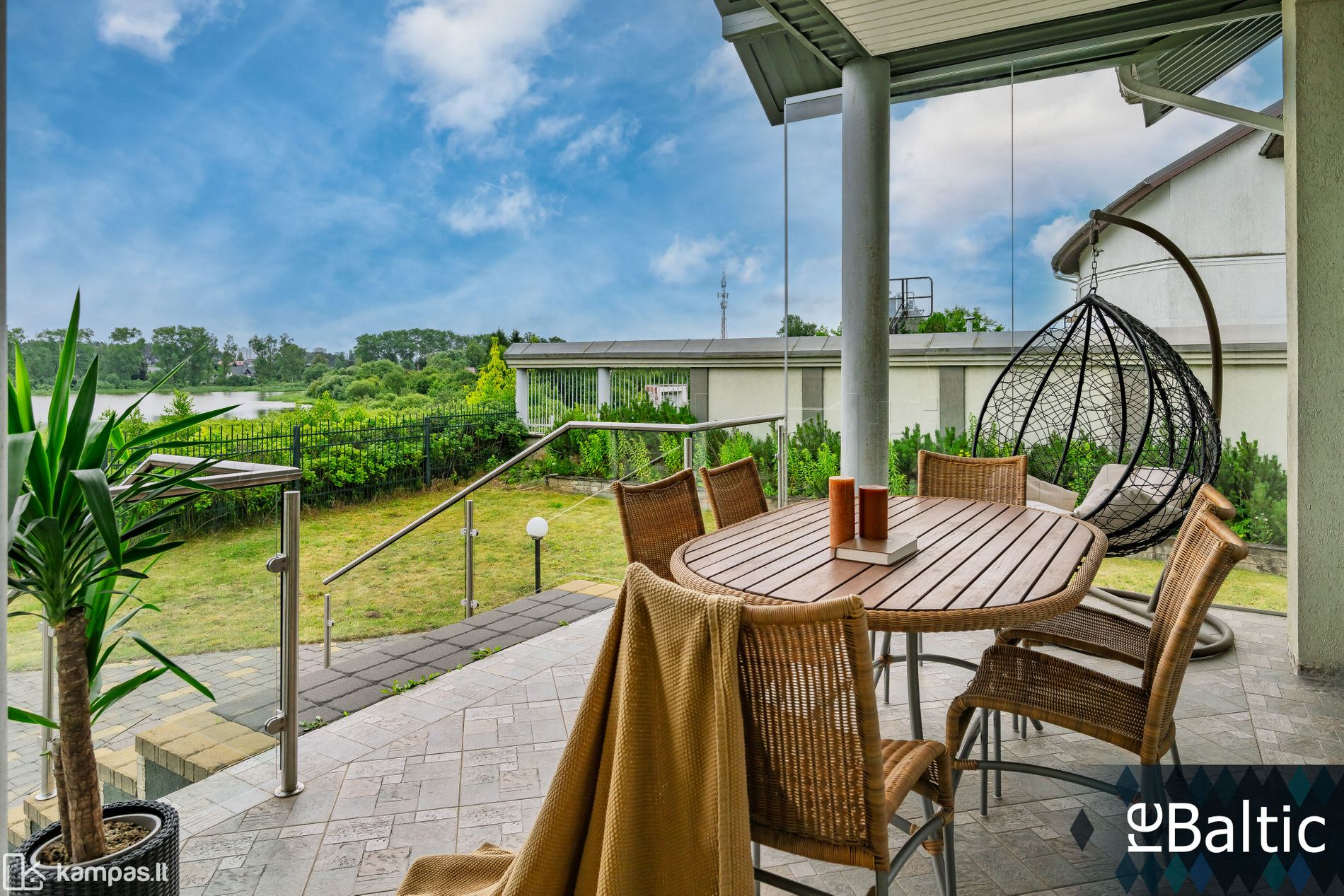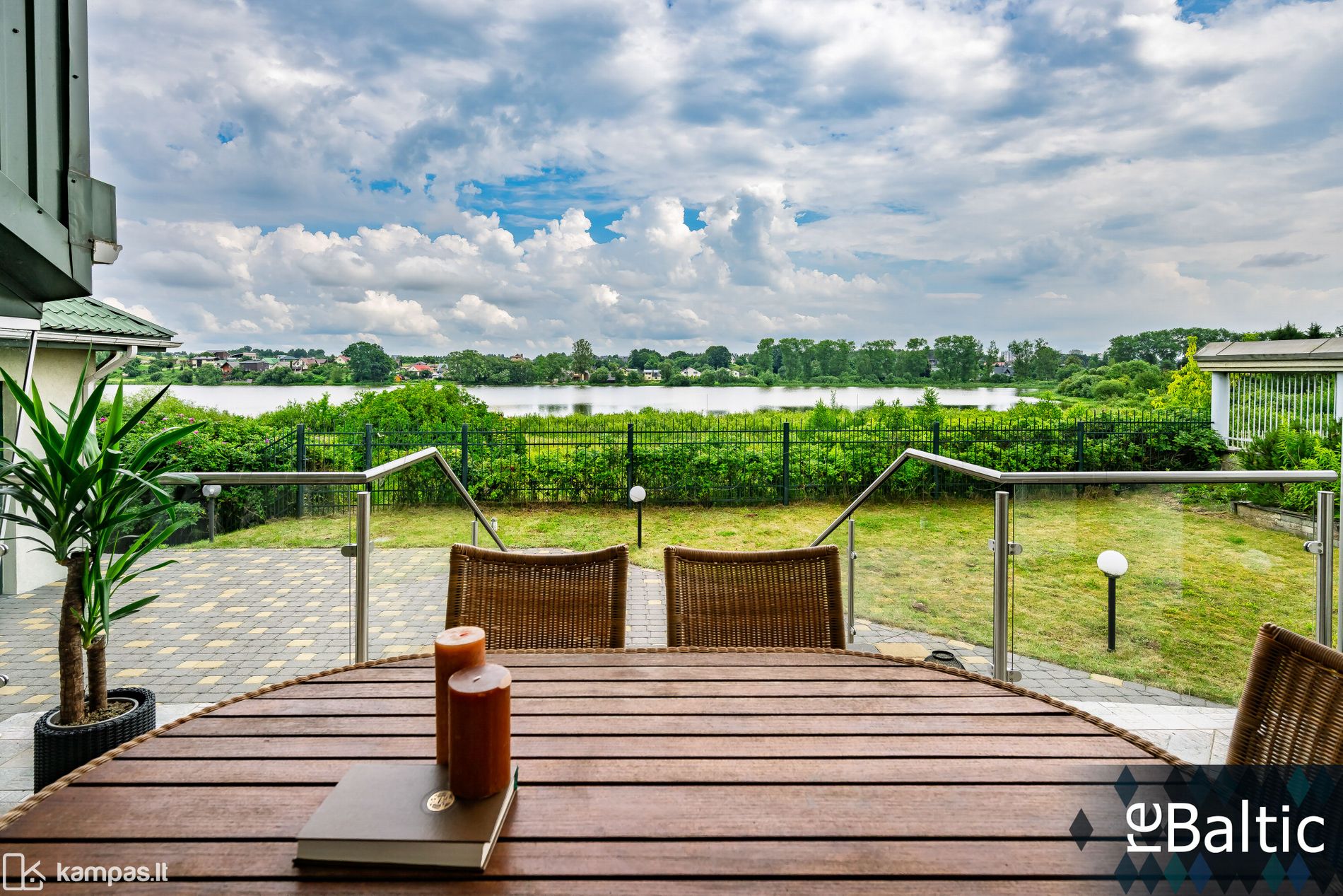 - Pirmame aukšte itin erdvi svetainė, virtuvė su valgomuoju, pro langus atsiveria vaizdai į ežerą