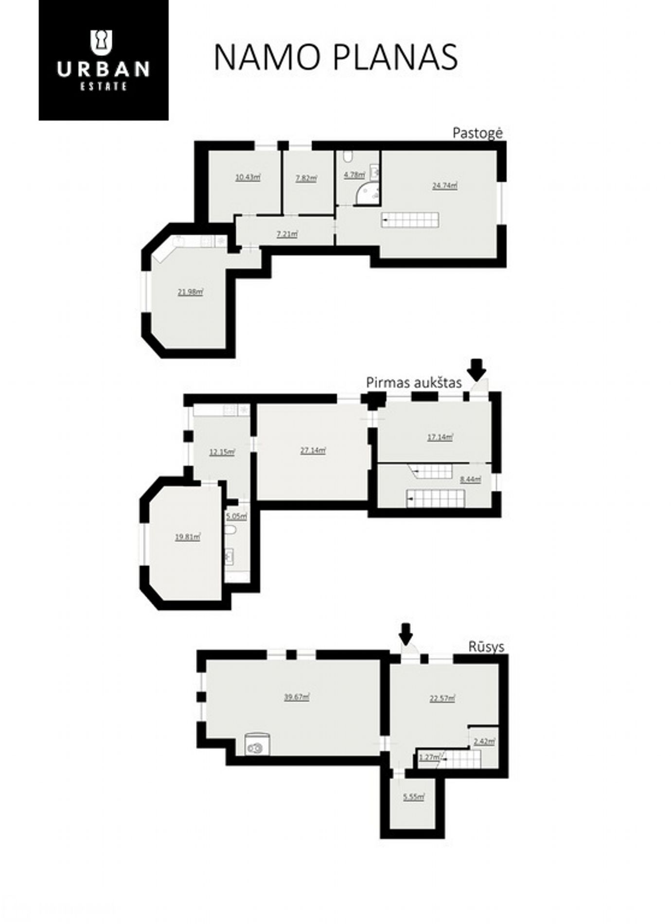 - Parduodama namo dalis yra erdvi, išplanuota per du aukštus ir rūsį.
