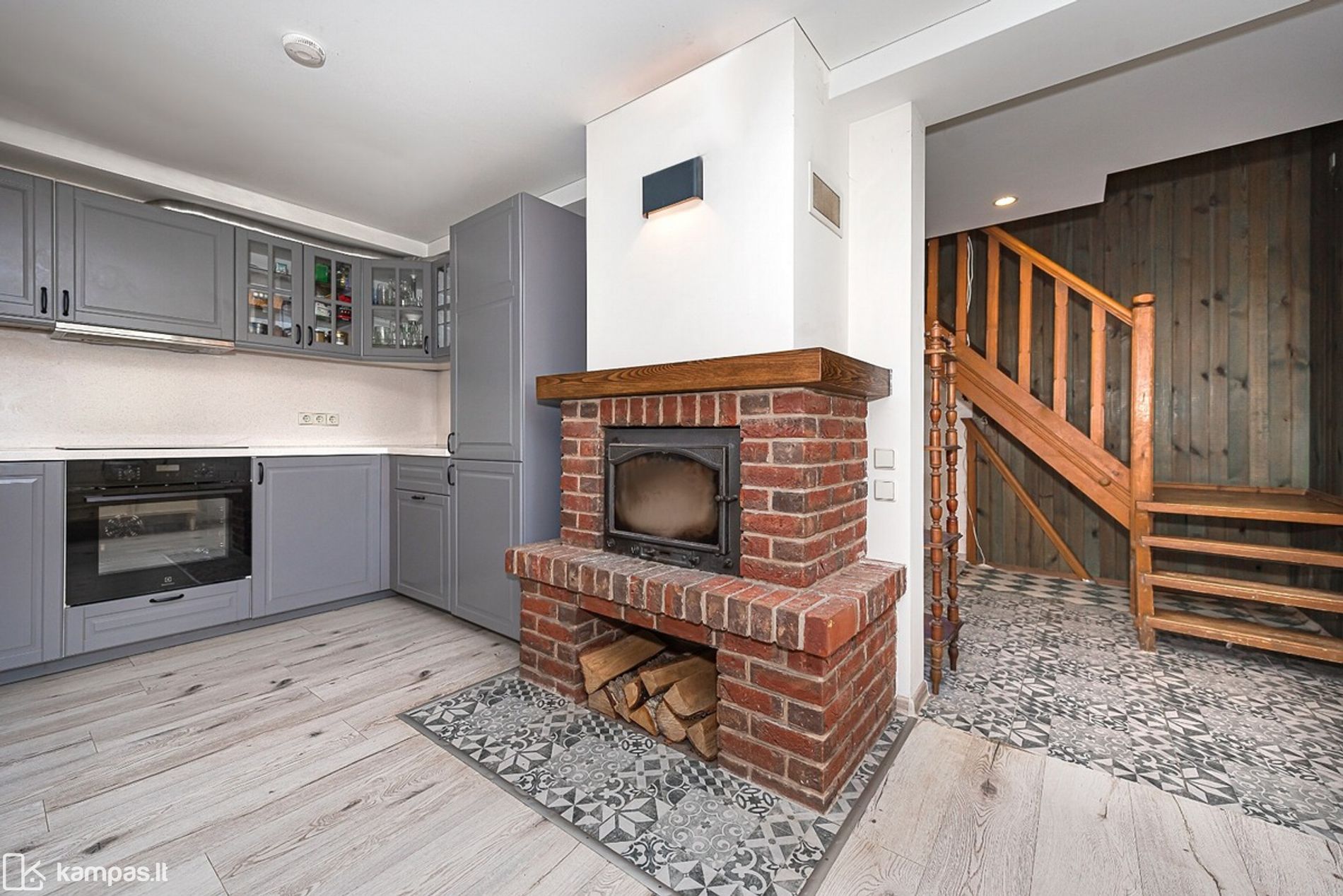 • Svetainėje yra židinys, kuris suteikia namams jaukumo bei šilumos pojūtį