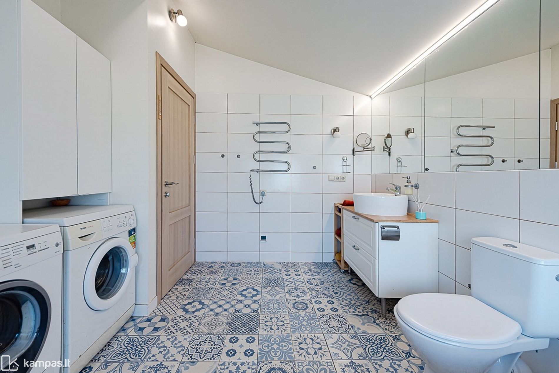 • Funkcionalus bei patogus išplanavimas: pirmajame aukšte erdvi svetainė, virtuvės bei valgomojo zonos, darbo kambarys, techninė patalpa - katilinė bei erdvus vonios kambarys, kuriame yra tiek vonia, tiek dušas bei skalbimo mašina su džiovykle. Antrajame aukšte keturi miegamieji kambariai.