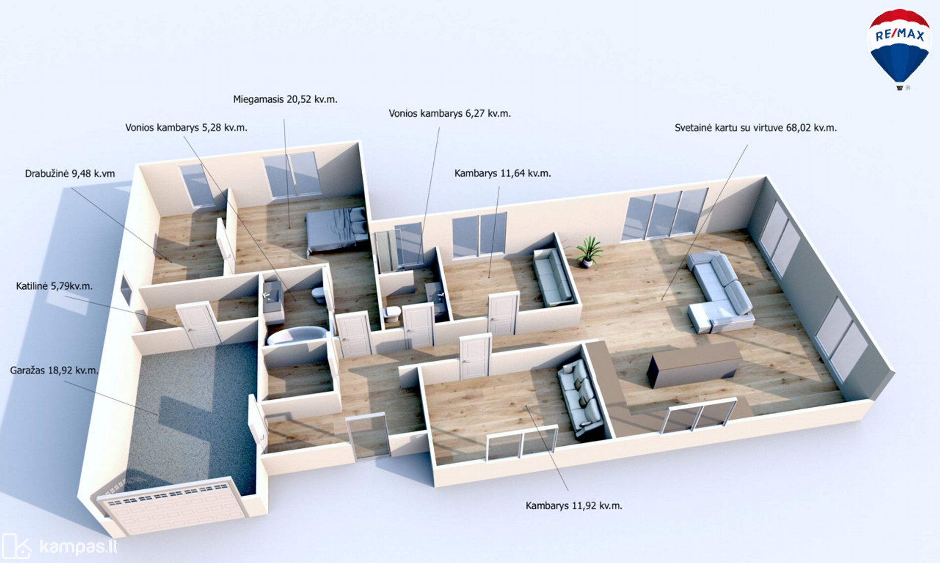- Funkcionalus išplanavimas, erdvūs kambariai;