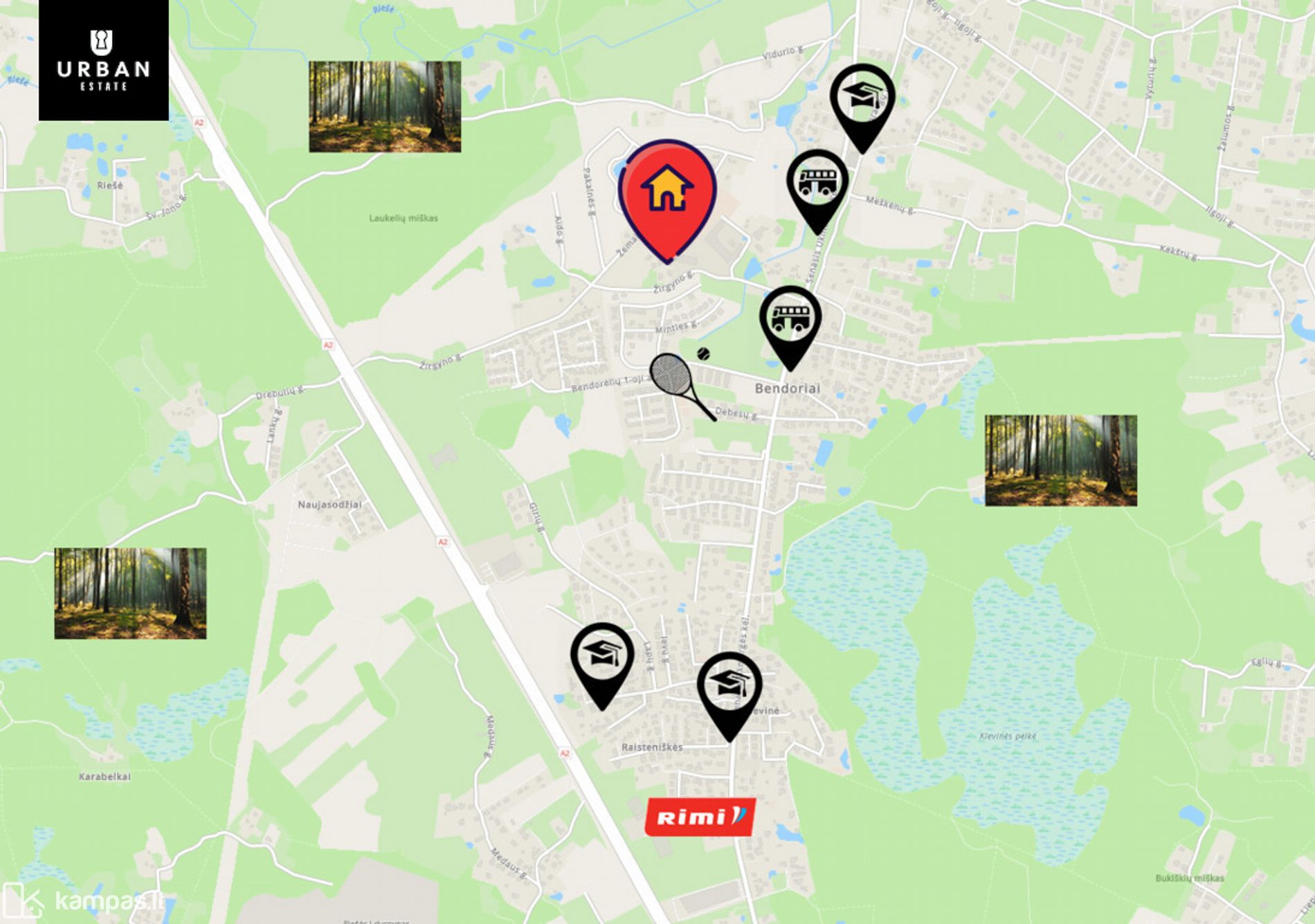 - Miesto centrą pasieksite greitai ir patogiai vos per 20 minučių, o kelių kilometrų spinduliu rasite visus reikalingus objektus: mokyklas, prekybos centrus, viešojo transporto stoteles.