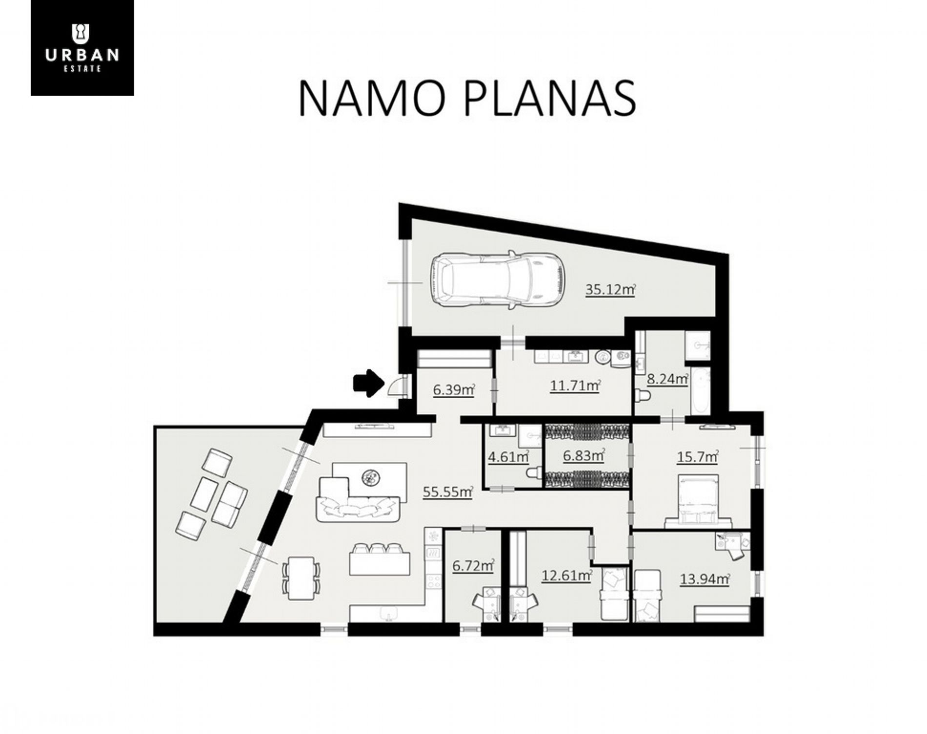 - Erdvios spintos, drabužinė, sandėliukai ir didelis garažas padės visuomet palaikyti namų tvarką ir jaukumą.