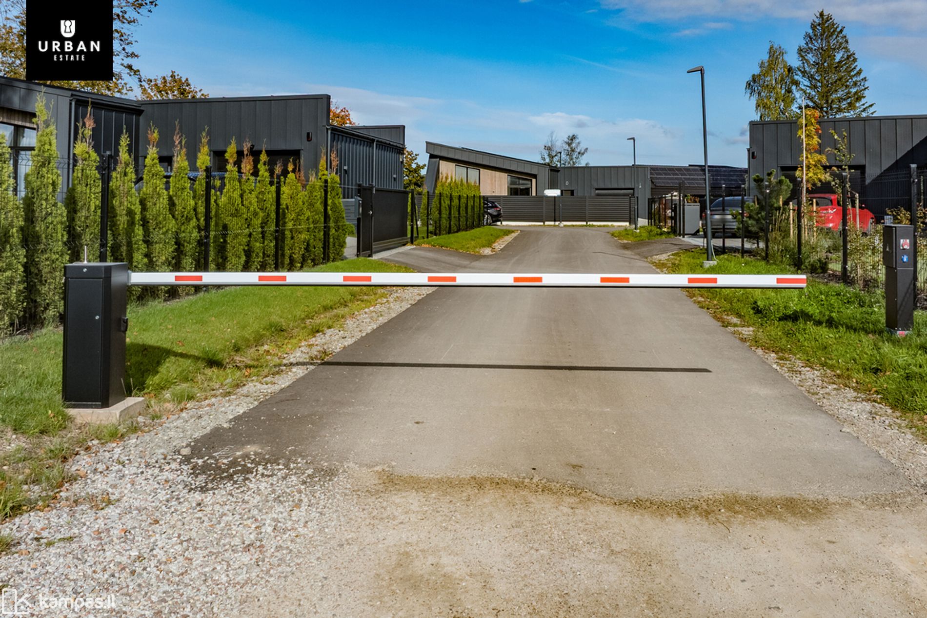- Aplink įsikūrusi solidi gyvenamųjų namų kaimynystė, į kurią patekimas per pakeliamą užkardą. Patogus privažiavimo kelias iki pat namo teritorijos.