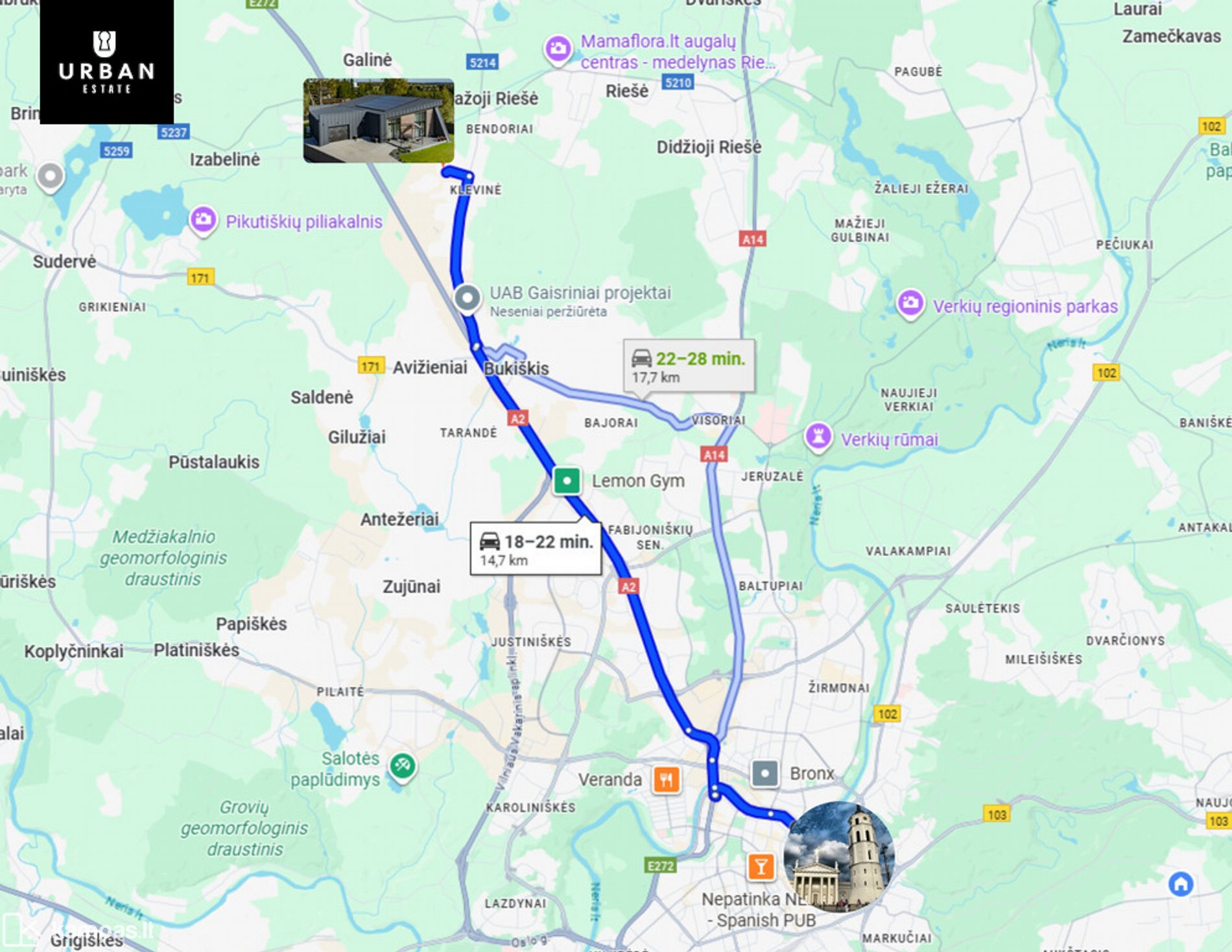 - Miesto centrą pasieksite greitai ir patogiai vos per 20 minučių, o kelių kilometrų spinduliu rasite visus reikalingus objektus: mokyklas, prekybos centrus, viešojo transporto stoteles.