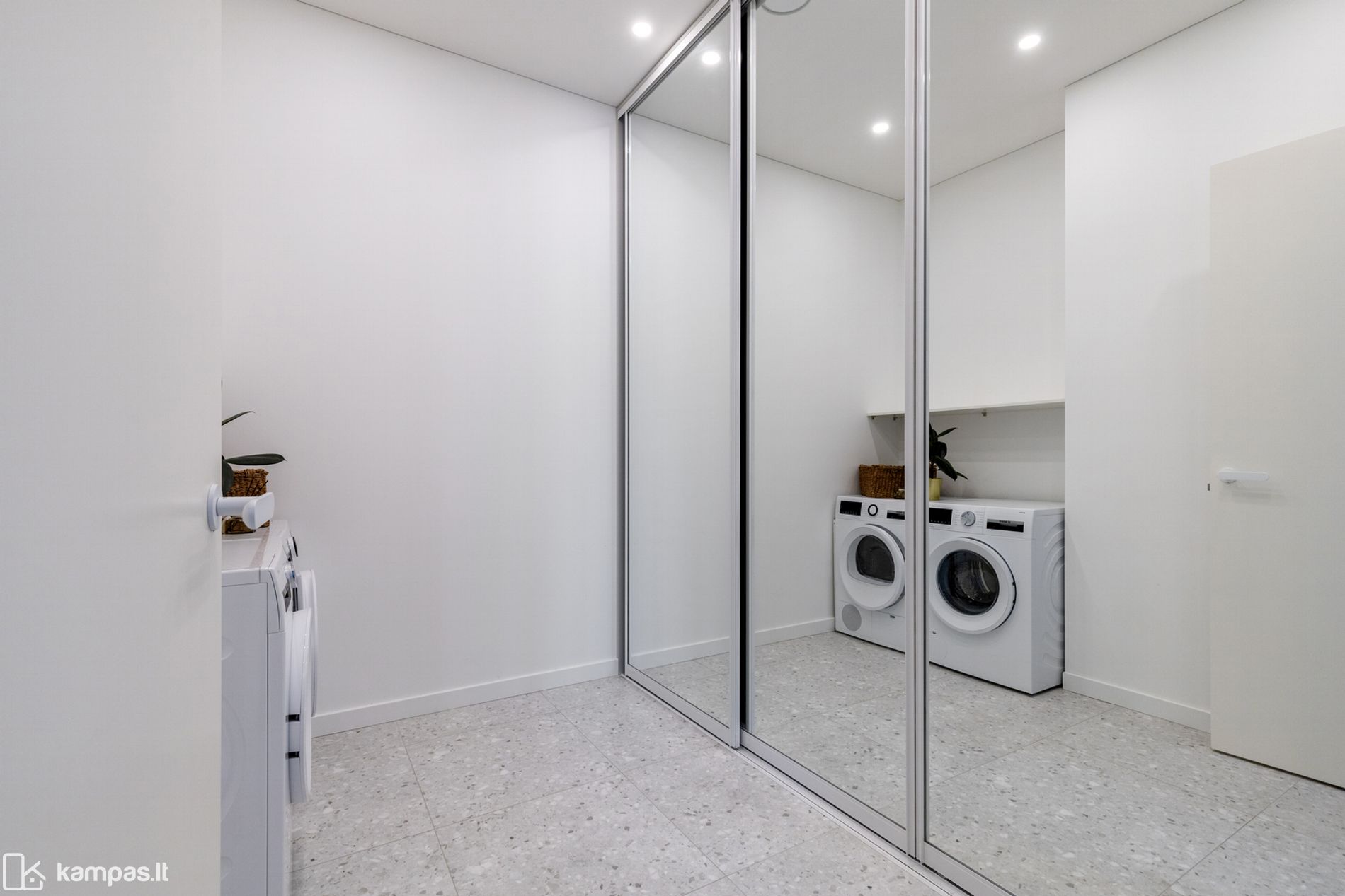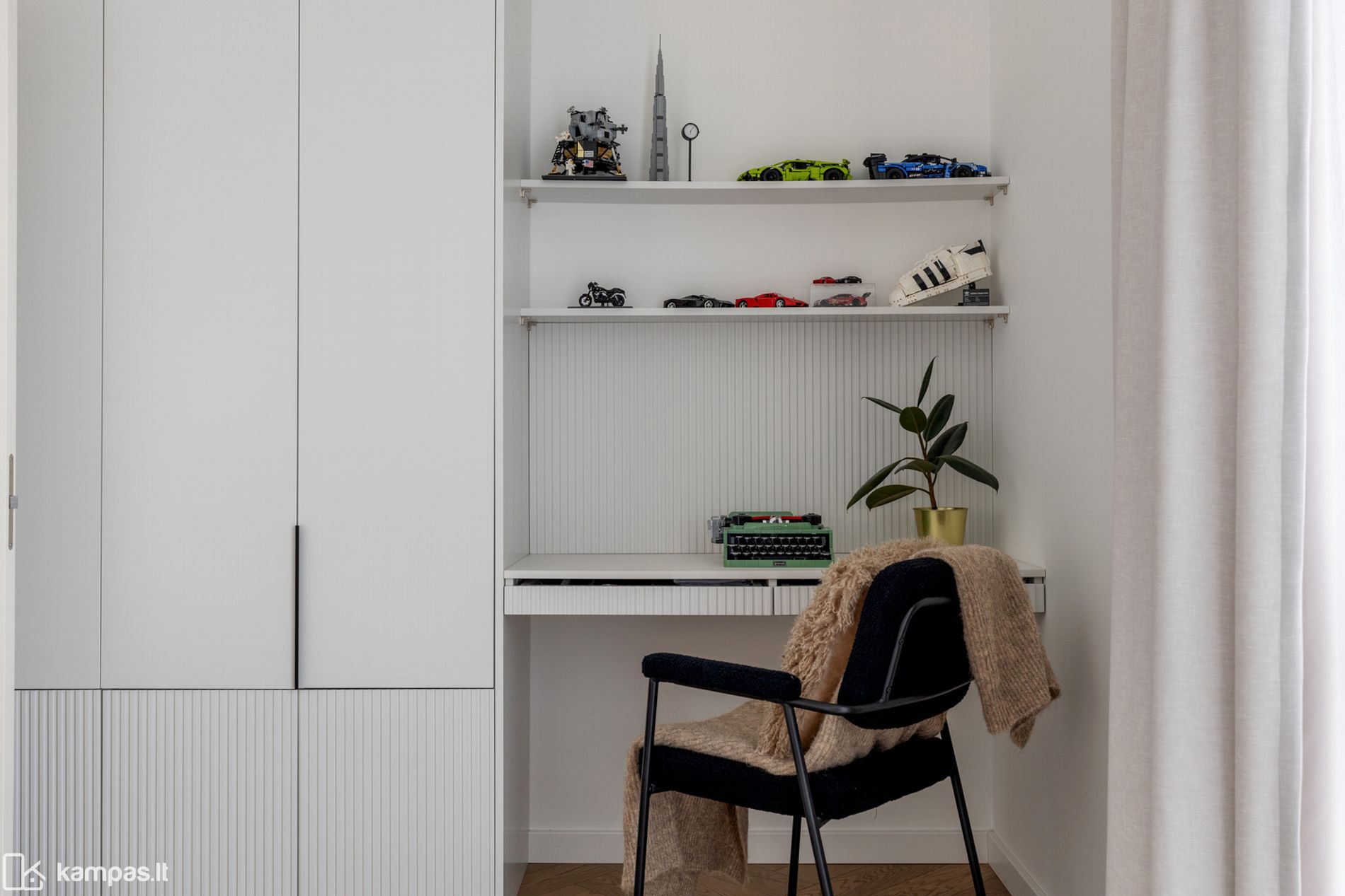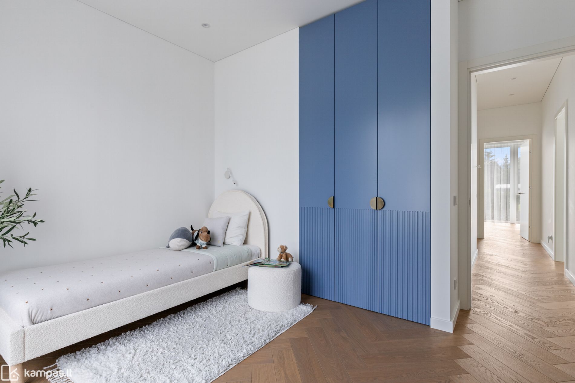 - Didelės įeinamos spintos – namuose integruota daug išmanių daiktų laikymo sprendimų, kurie leidžia palaikyti tvarką ir išnaudoti visą erdvę iki smulkmenų. Čia kiekvienas daiktas turės savo vietą – nuo sezoninių drabužių iki buitinės technikos.