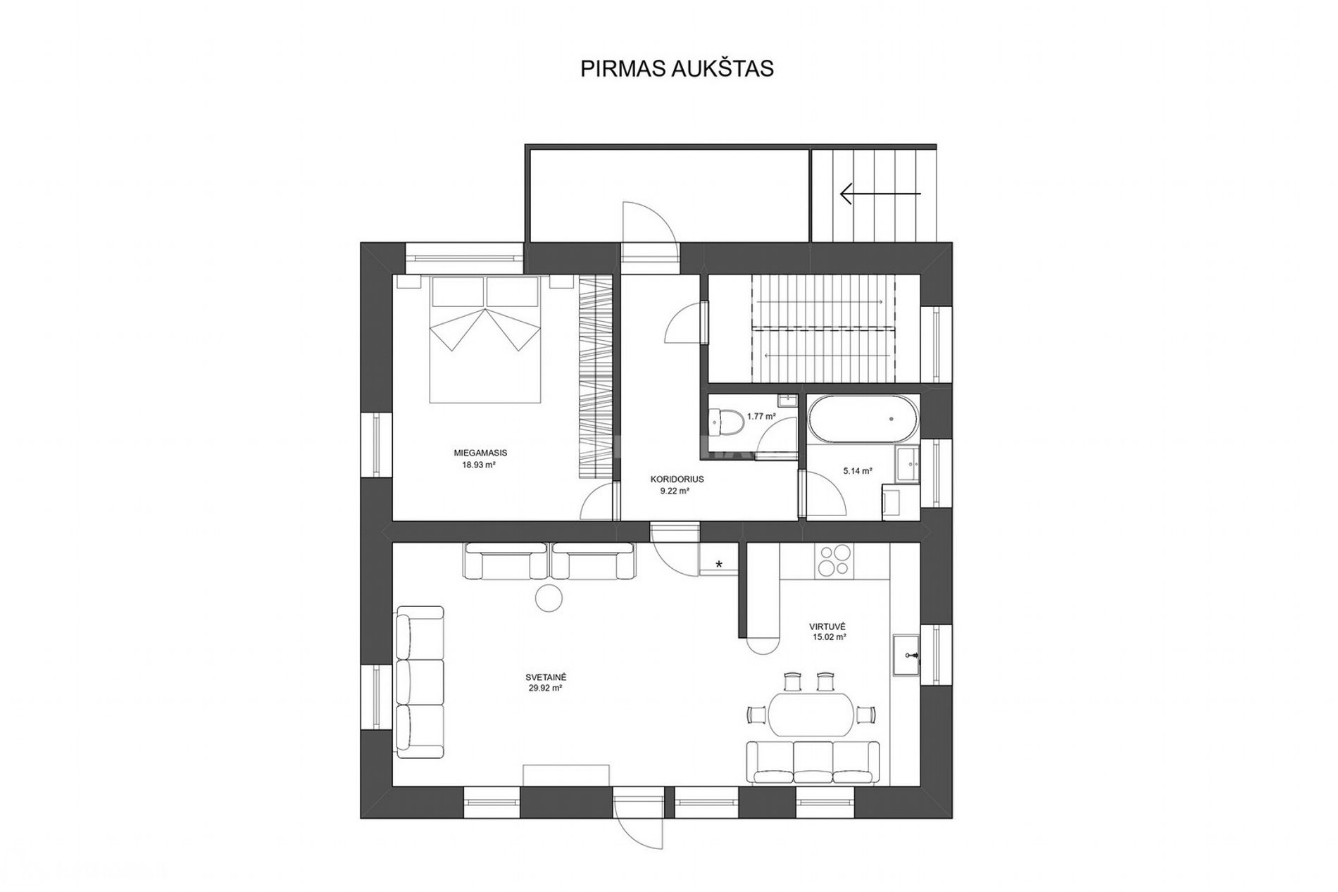 Namo erdvės suplanuotos patogiam gyvenimui – jame rasite visus reikalingus baldus ir buitinę techniką, tad galėsite įsikelti iš karto. Rūsyje įrengta sauna, kurioje galėsite atsipalaiduoti ir atgauti jėgas. Namo šildymas galimas dviem būdais – kietu kuru arba dujomis.