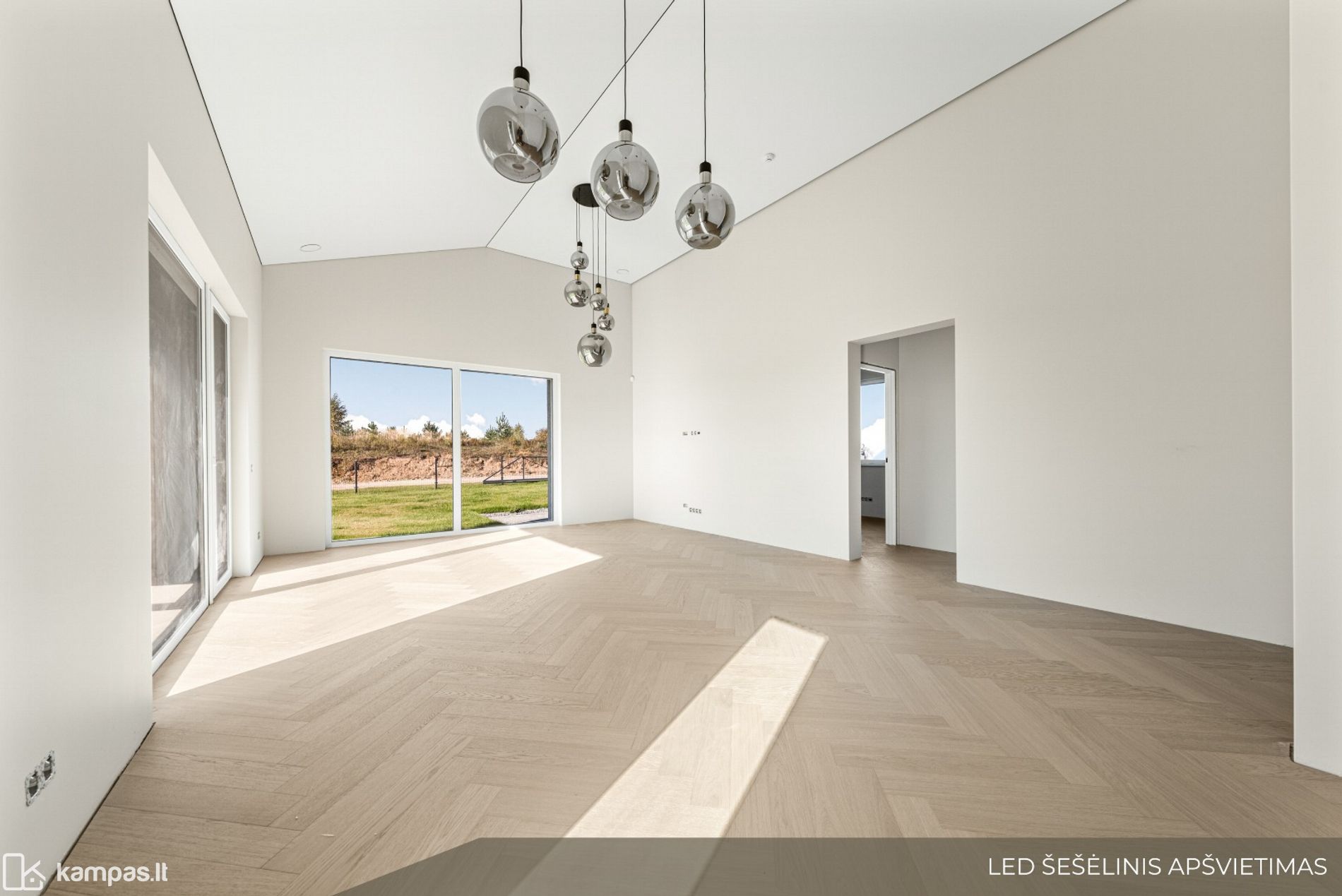 Šiame projekte, nutolusiame vos 10 km nuo Vilniaus centro, atrasite svajonių namų charakteristikas atitinkančius sprendimus - funkcionalus patalpų išdėstymas viename aukšte su daugiau nei 4 m siekiančiomis lubomis svetainės zonoje, dideli langai nuo grindų apačios, erdvi terasa, garažas ir net iki smulkmenų apželdintas 7,6 aro sklypas su automatinio laistymo sistema. Šie sprendimai sukuria išskirtinį gyvenimo komfortą, kurį jausite tiek būdami namo viduje, tiek leisdami laiką su šeima lauke.