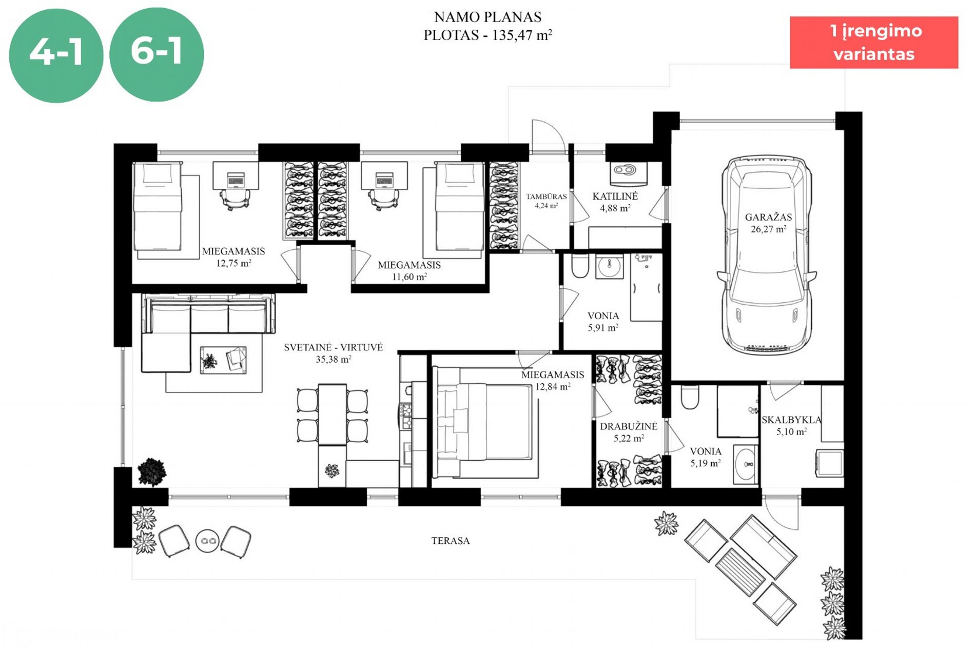 Namo plotas: 136 m2 (iš jų 26 m2 garažas)