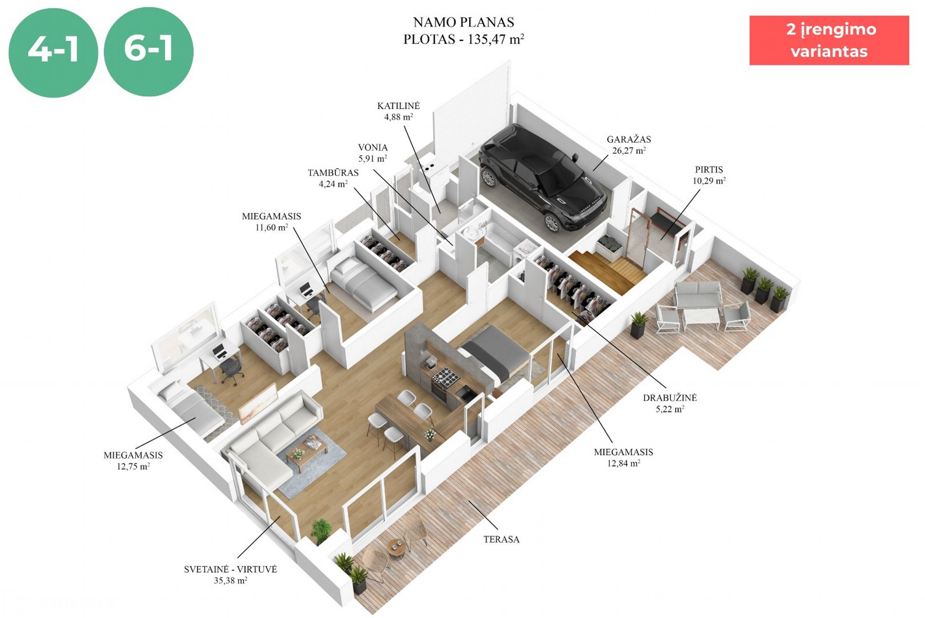Namo plotas: 136 m2 (iš jų 26 m2 garažas)