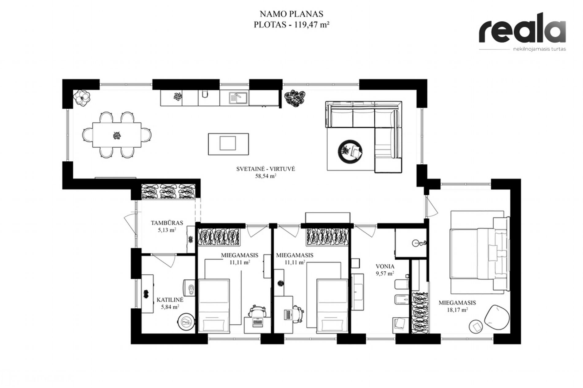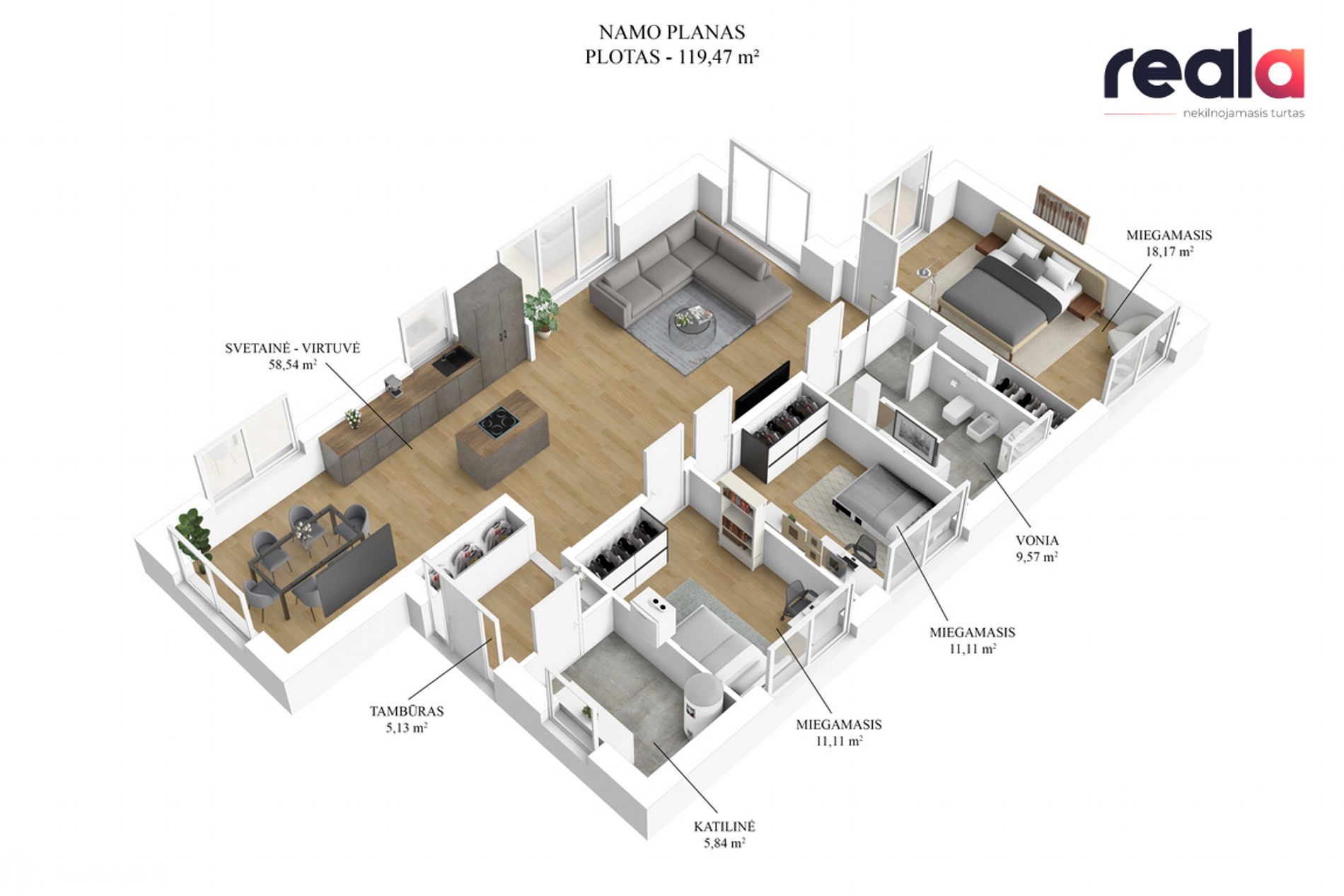 - Namo plotas - 119,47 kv. m.;