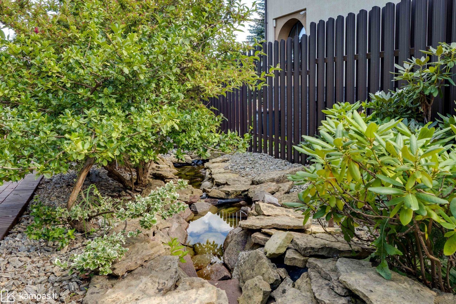 • Užsėta, užaugusi veja, medžiai ir krūmai;