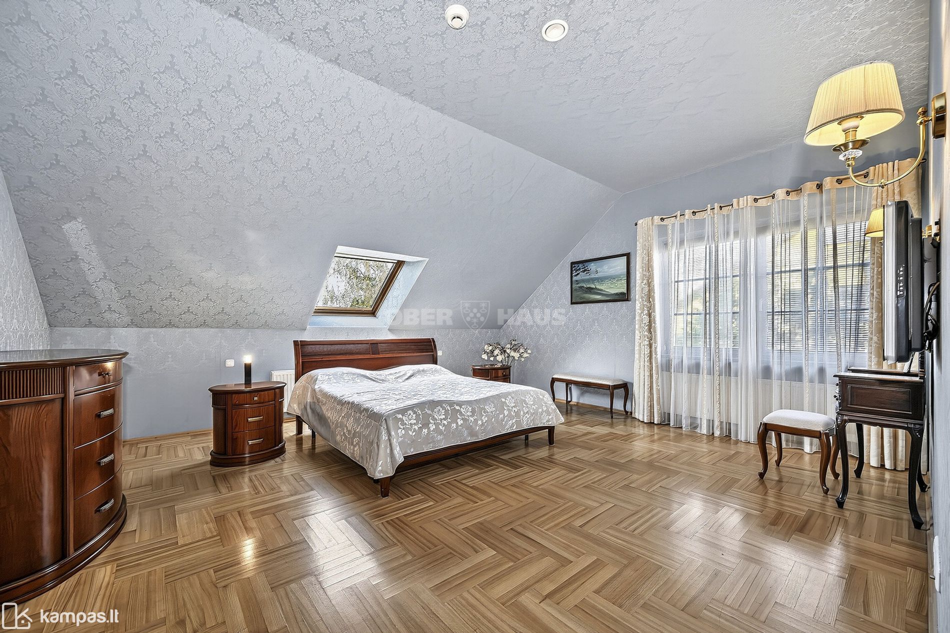 Įrengimas: kokybiška pilna apdaila, natūralaus medžio langai, parketas, jauki svetainė, patogi virtuvė, valgomasis, drabužinė, vonios kambariai.