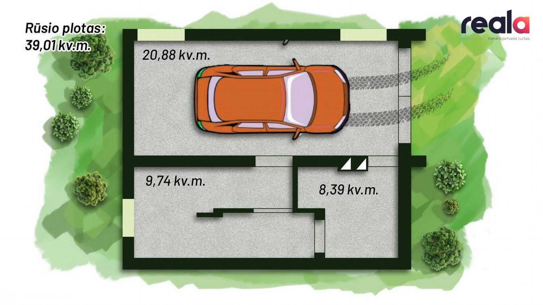 - Viena parkavimo vieta garaže.
