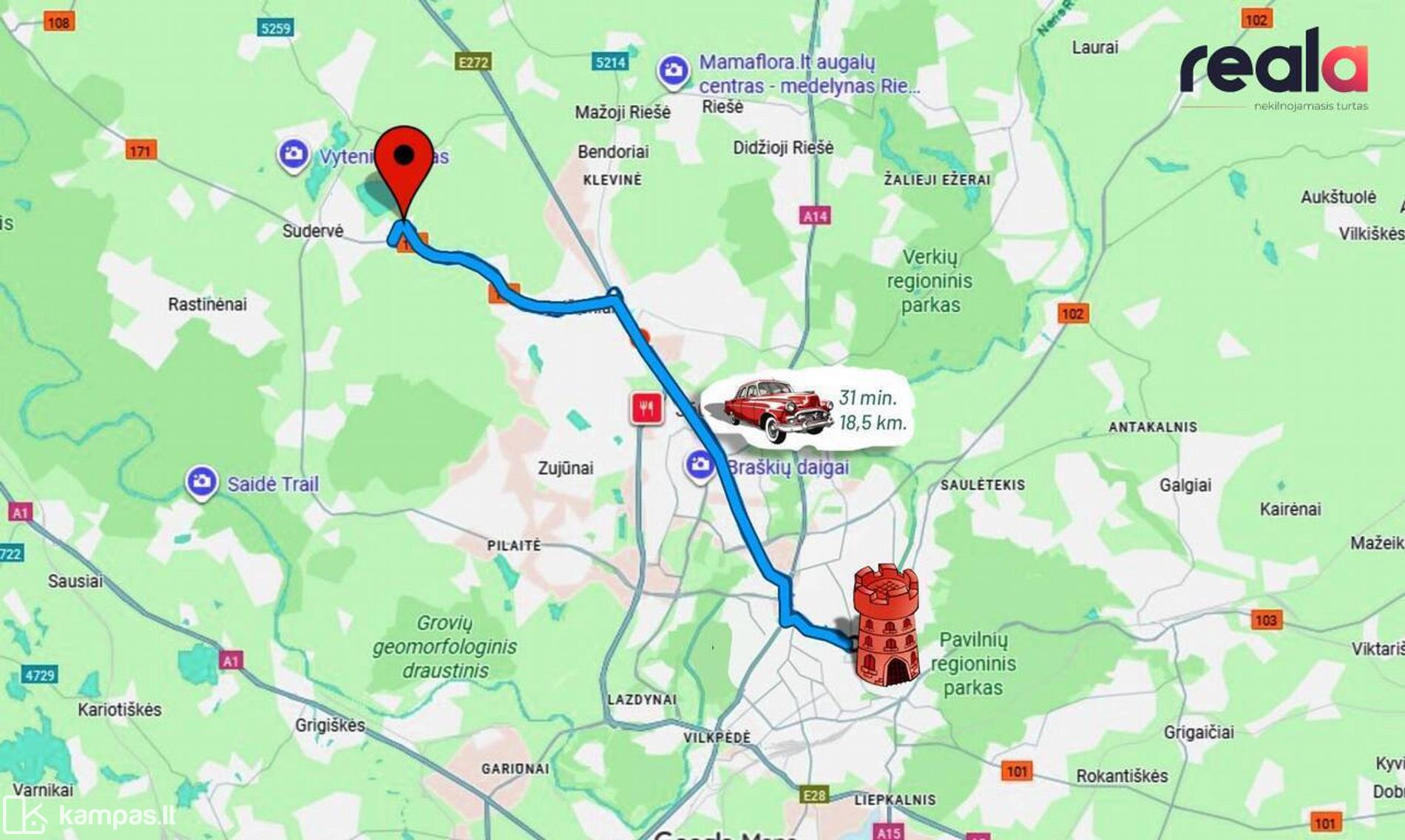 / 18.5 km. iki Gedimino pilies.