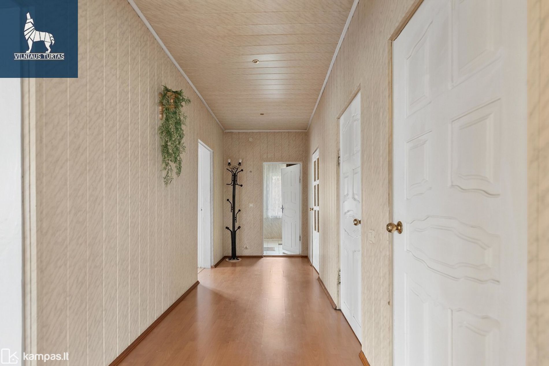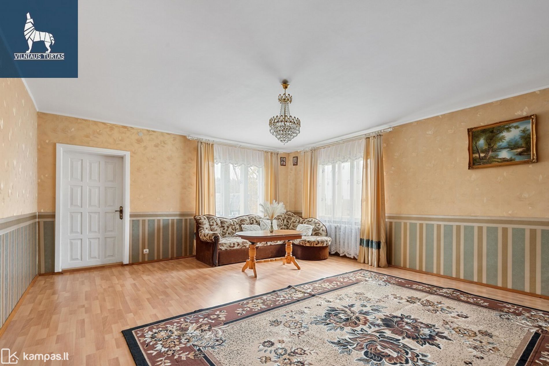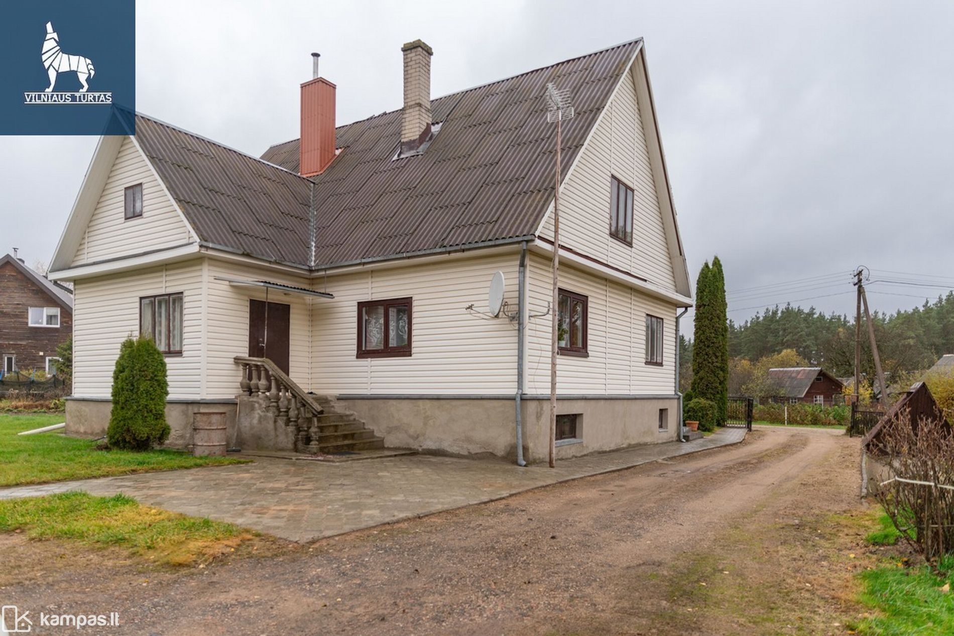 – 1 aukšte: erdvi svetainė su išėjimu į kiemą, virtuvė, 3 kambariai, koridorius, tualetas, vonia.