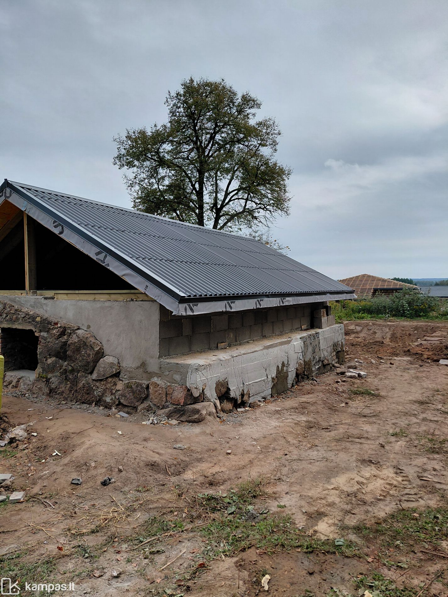 Parduodamas pradėtas statyti pastatas ant namų valdos sklypo.