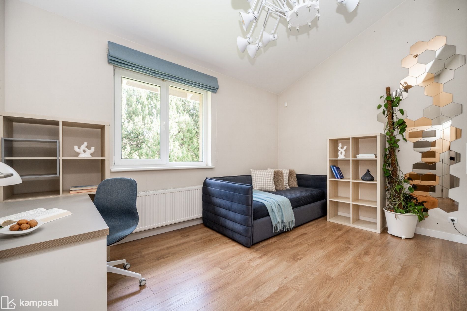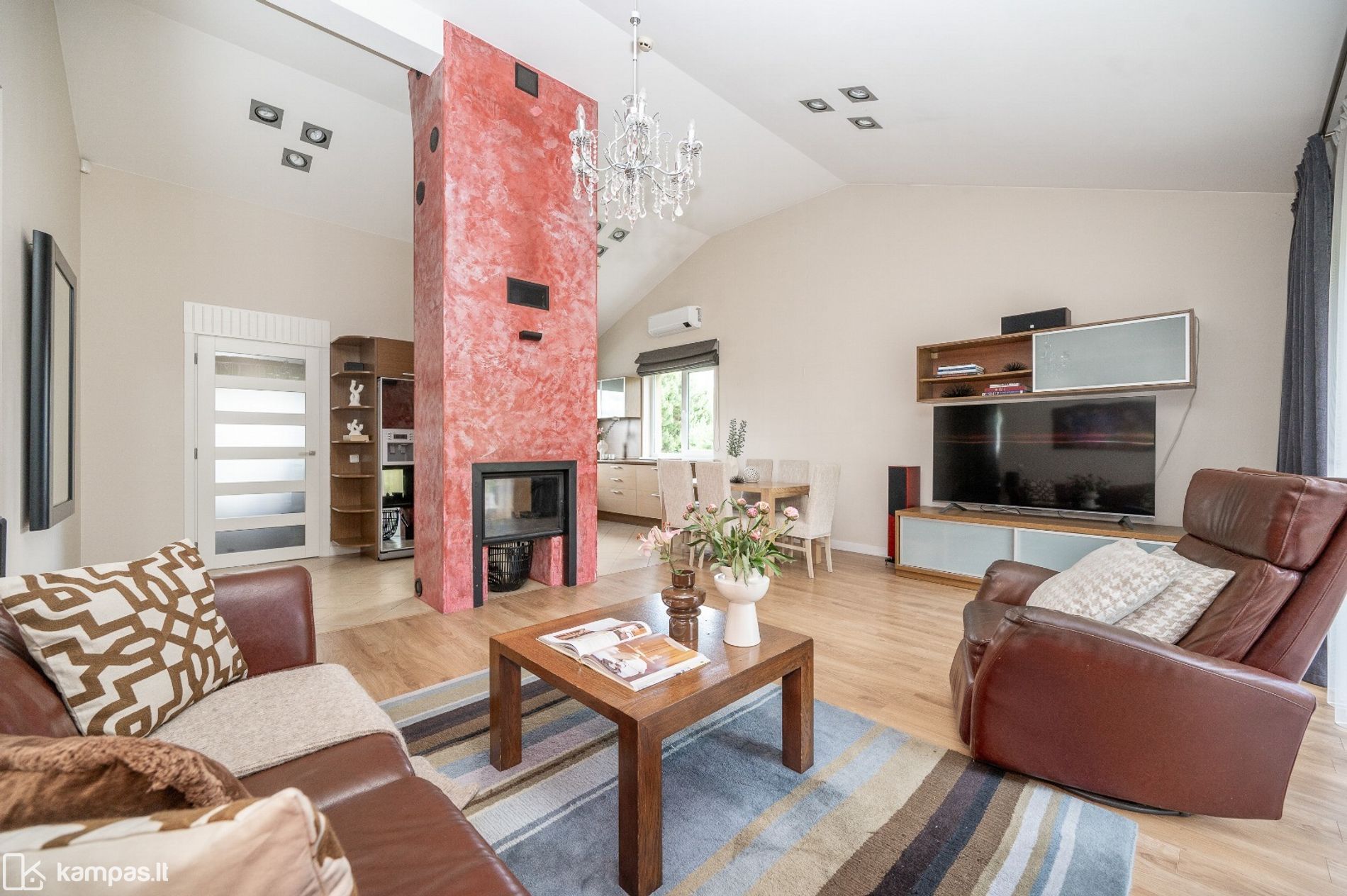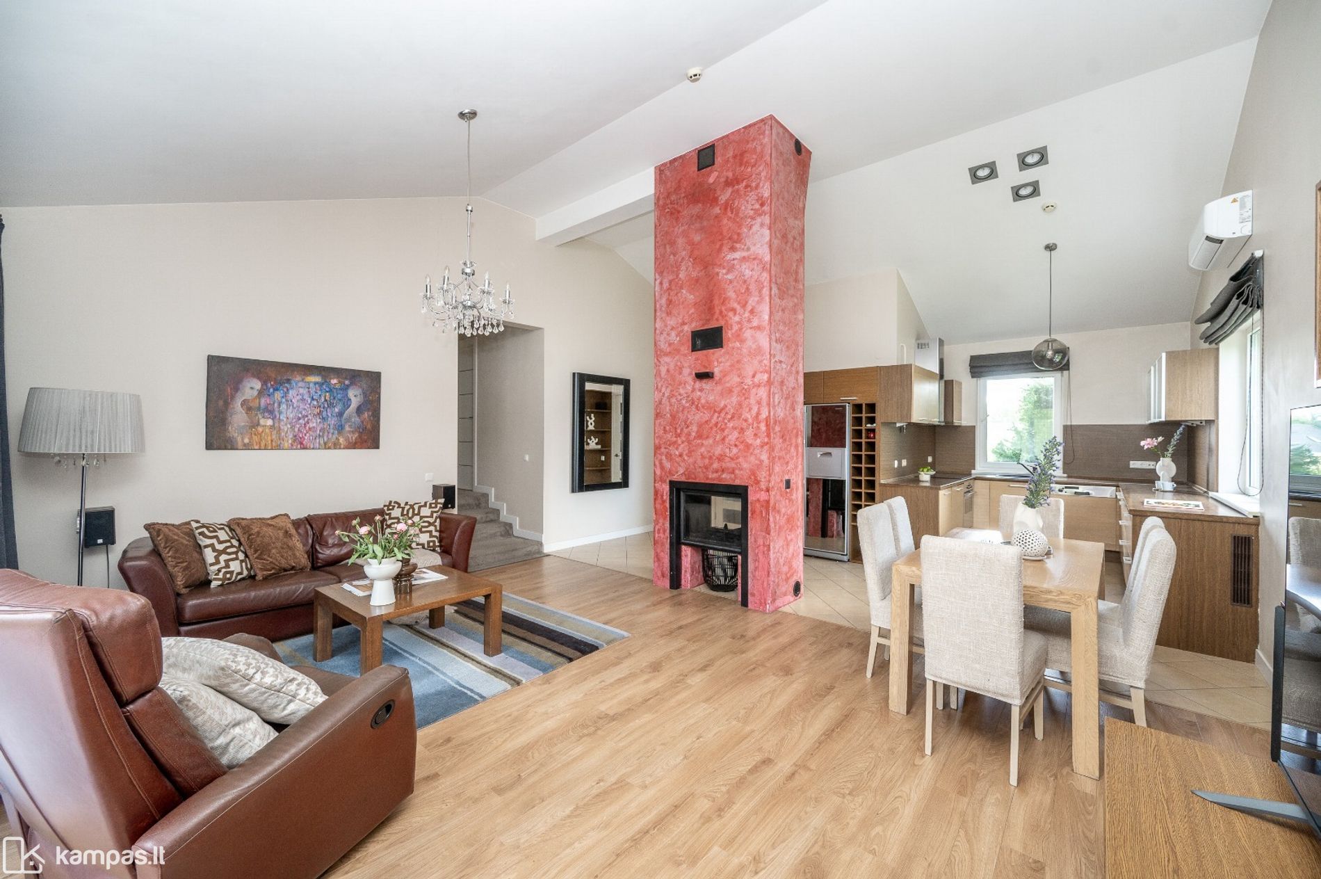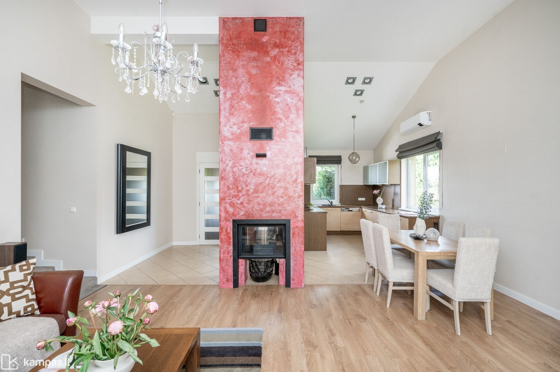 • Svetainėje yra įrengtas židinys, kuris suteikia namams jaukumo bei šilumos pojūtį.