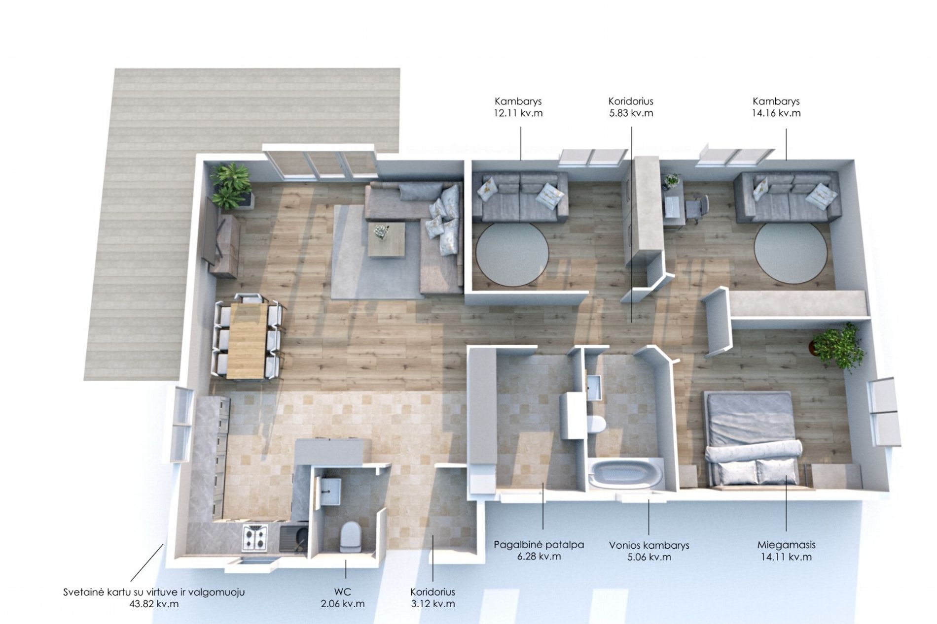 • Erdvi lauko terasa su lauko baldais.