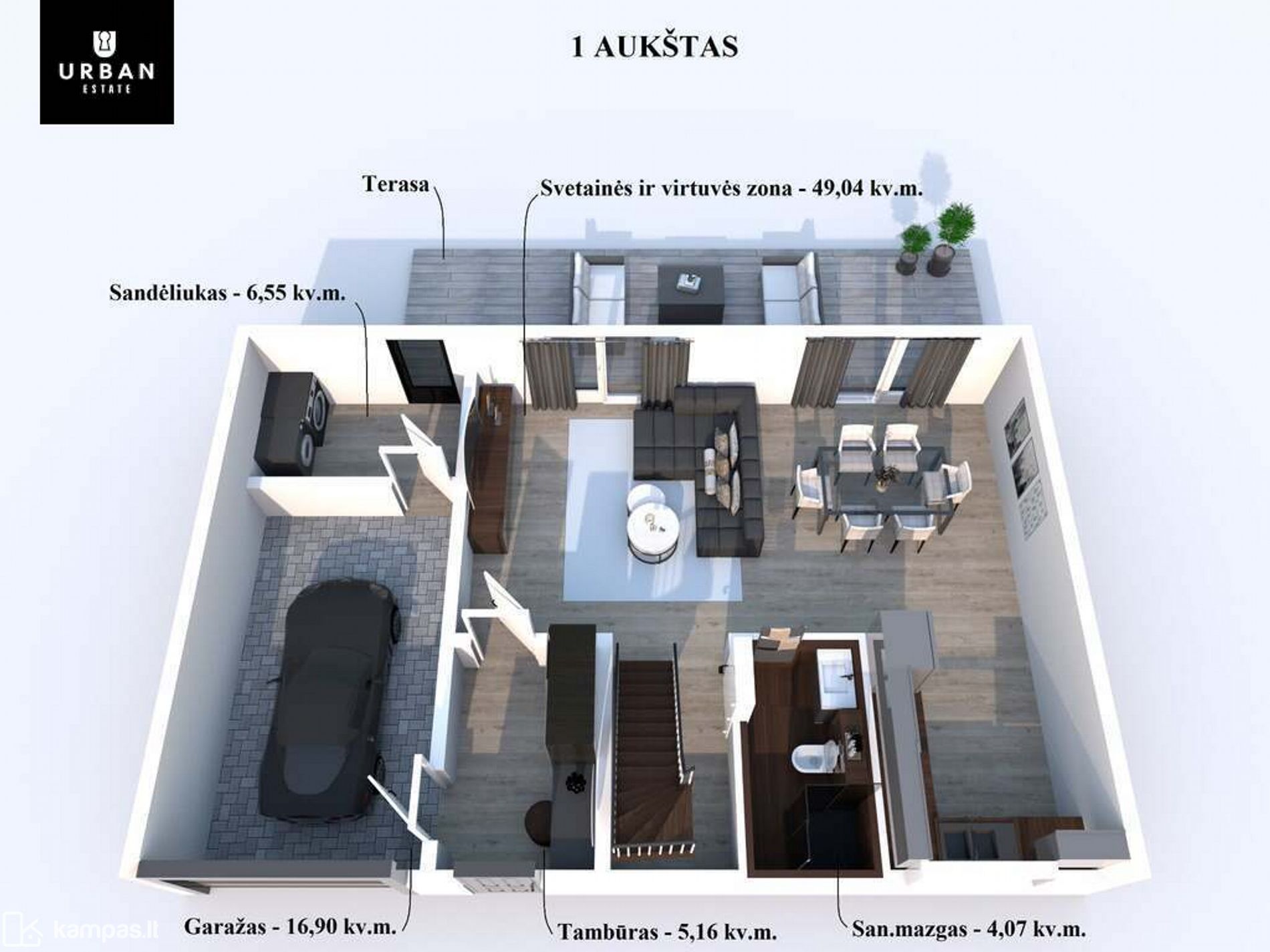 • Svetainė sujungta su virtuve bei patogiu patekimu į jau įrengtą terasą.