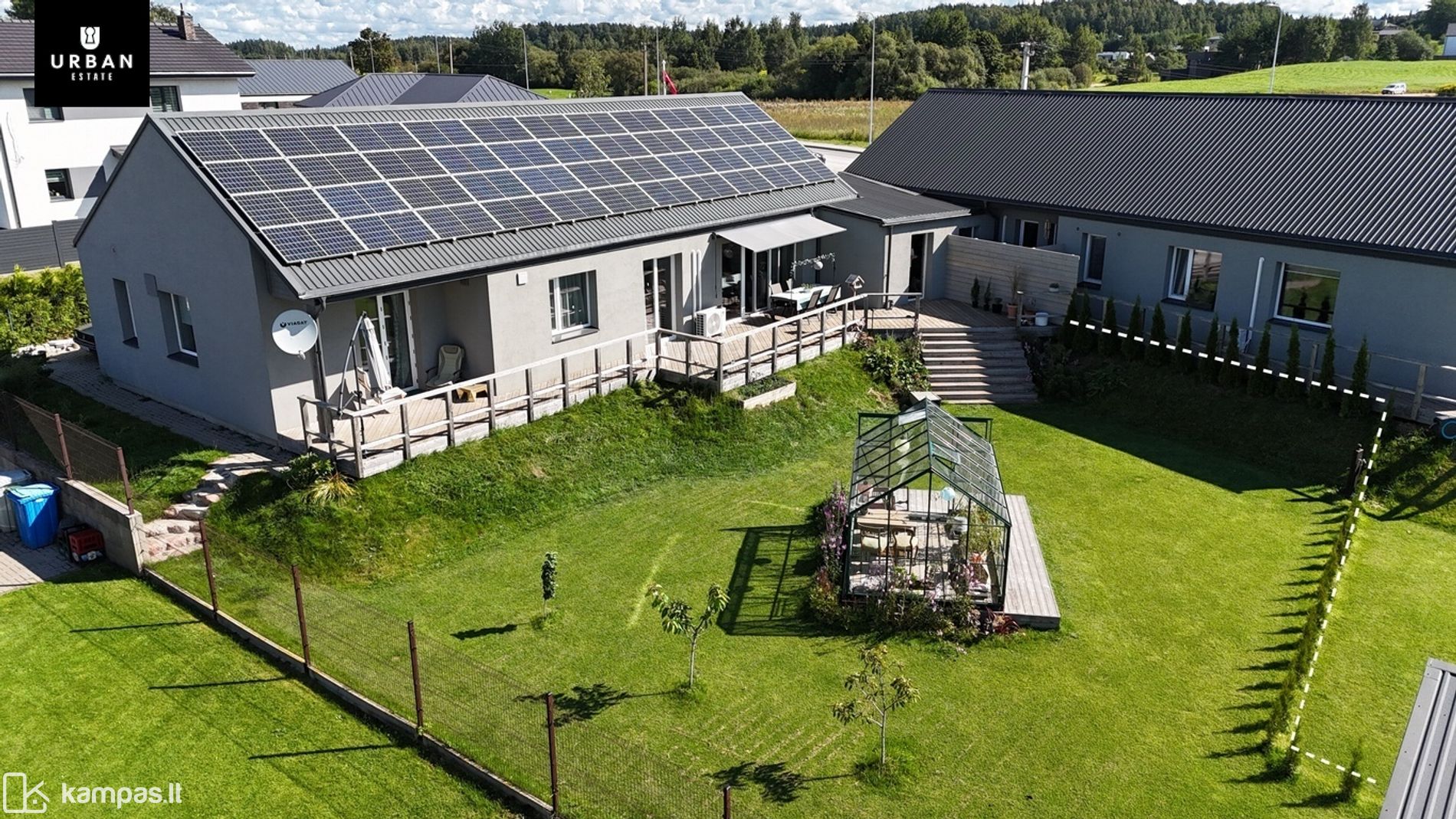 - Namas šildomas ekonomiška grindine šildymo sistema - saulės kolektoriais. Namų gaiva rūpinasi rekuperacija, o karštomis dienomis atgaivina kondicionieriai.