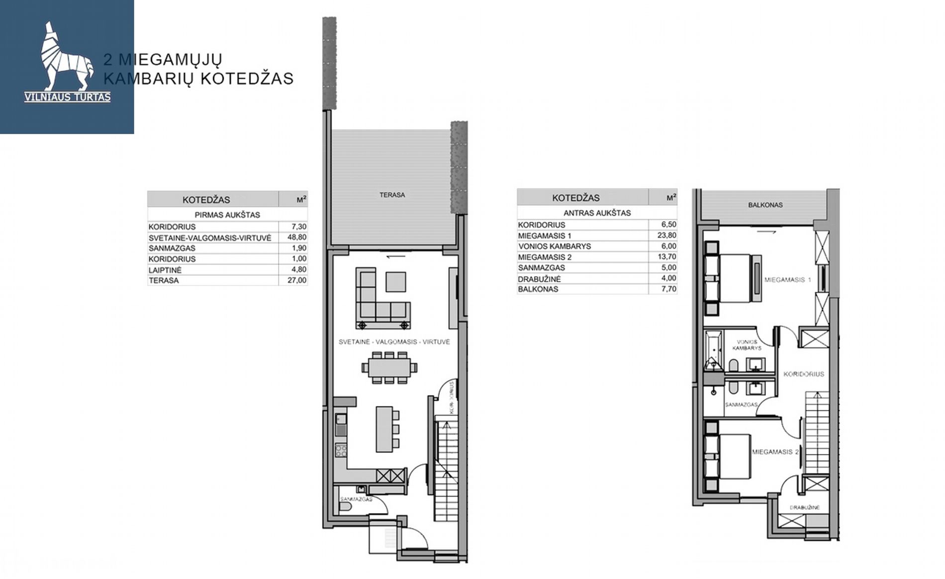 ✓ Kotedžams priklauso vidinis kiemas su terasa ir veja;