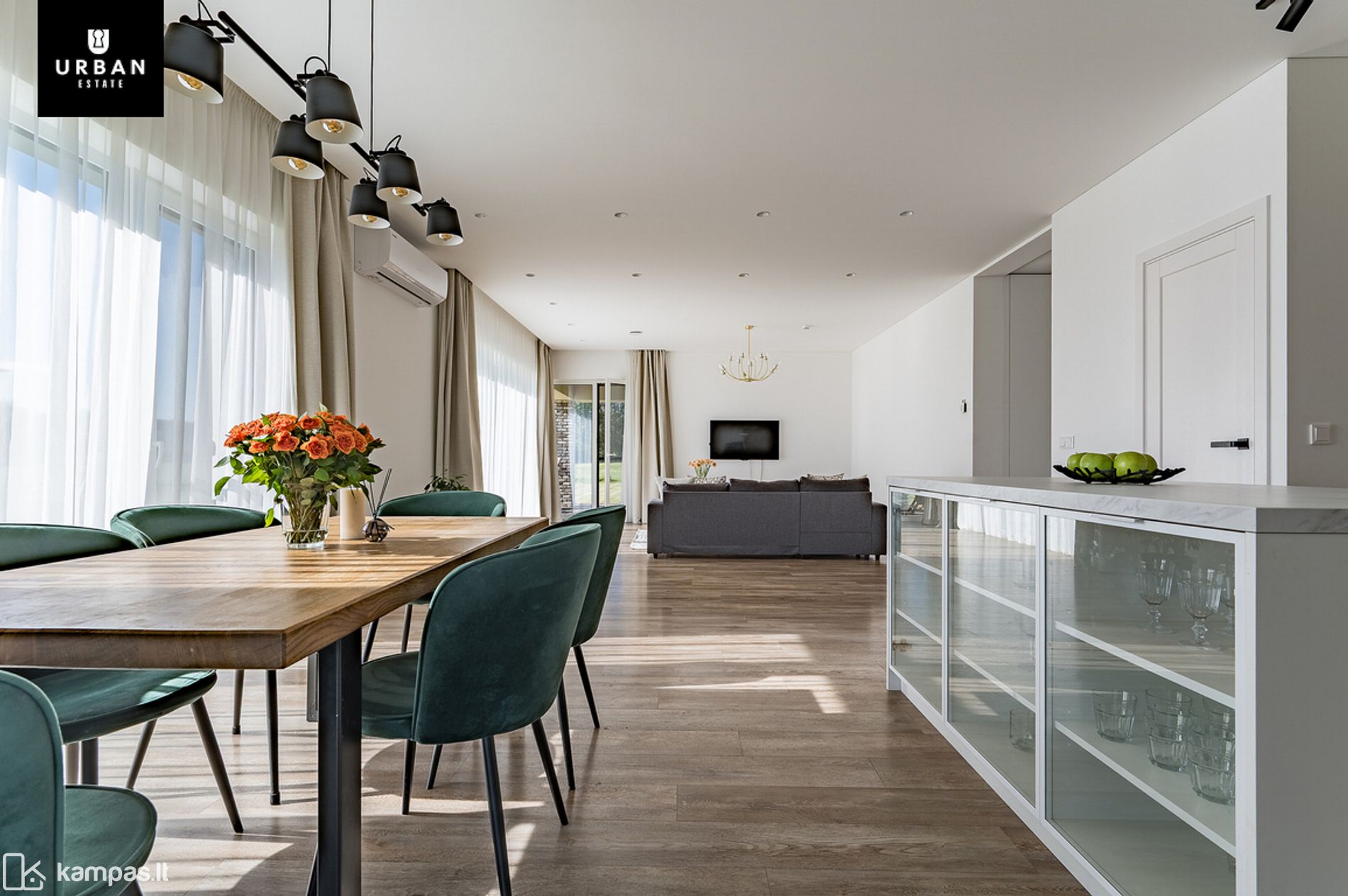- Šiuolaikiškas ir šviesus interjeras kurtas apgalvojant kiekvieną namų erdvę ir praplečiant erdvės pojūtį. Apgalvotos akcentinės detalės ir parinkti spalvų tonai sukuria vientisumo ir ypatingo jaukumo pojūtį.