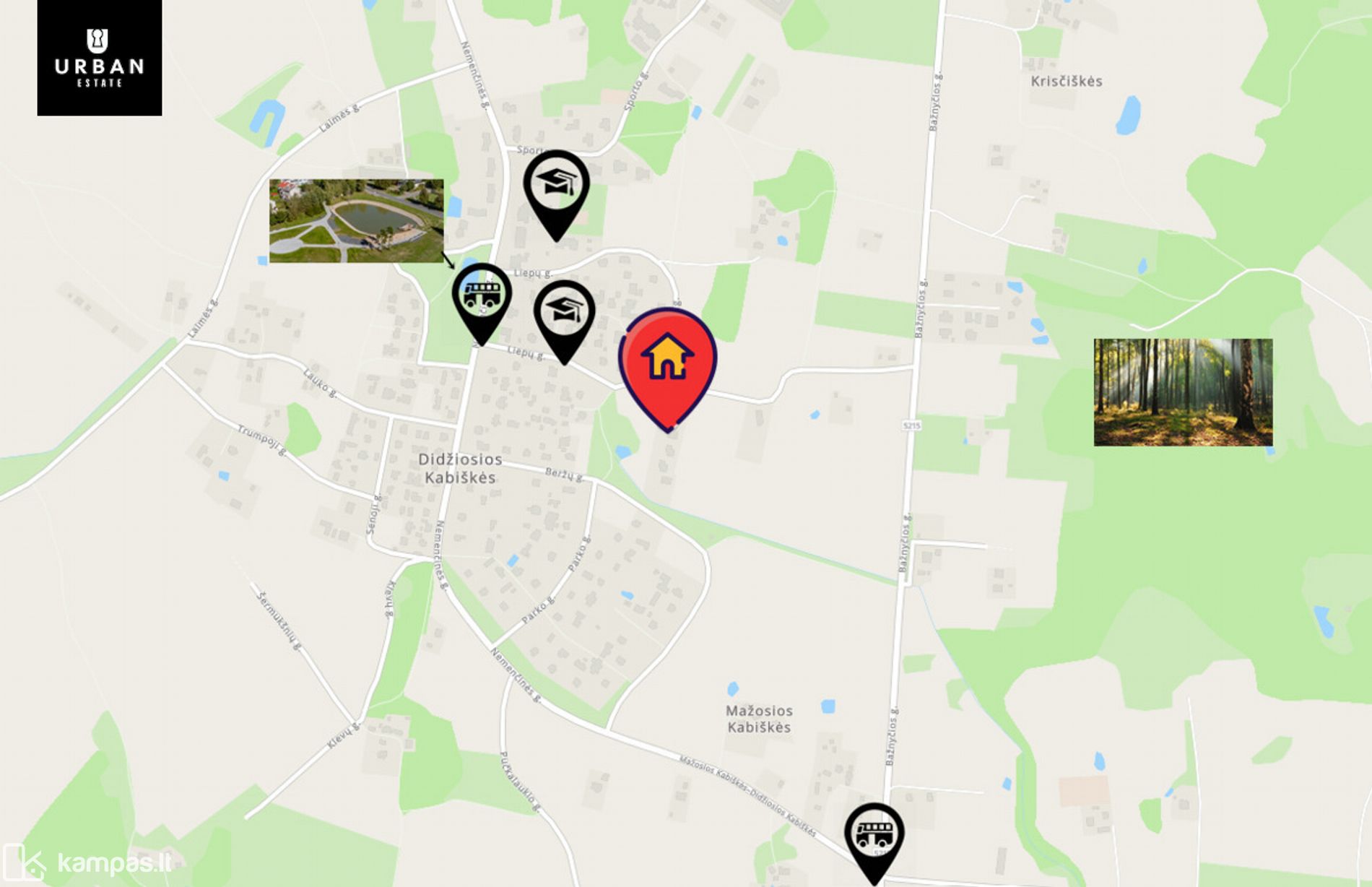- Pro gyvenvietę kursuoja viešasis transportas, vos keli kilometrai iki Nemenčinės, kur rasite visus reikalingus objektus.