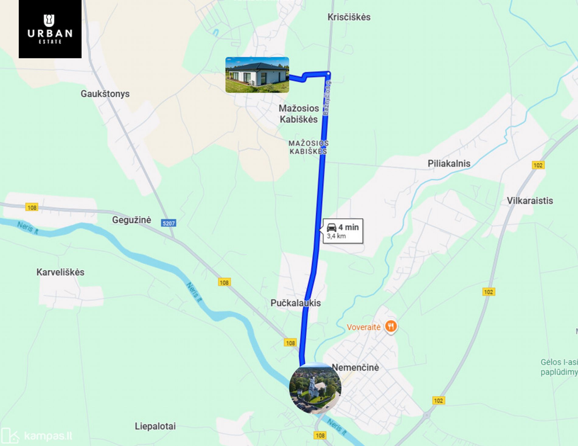 ~3.4 km iki Nemenčinės miesto, kur rasite visus reikalingus objektus;