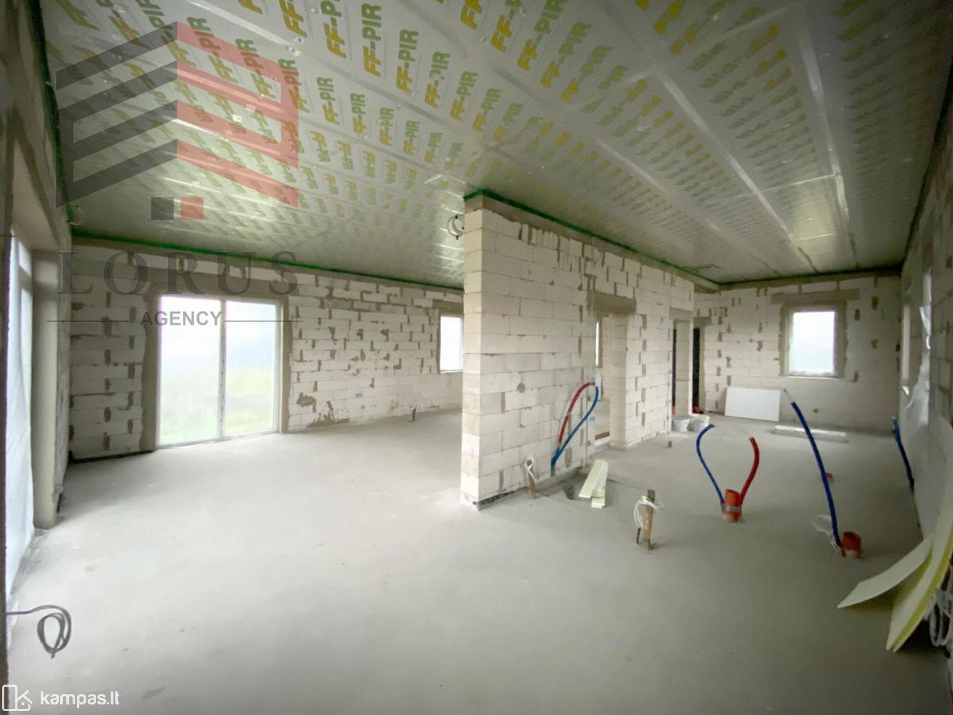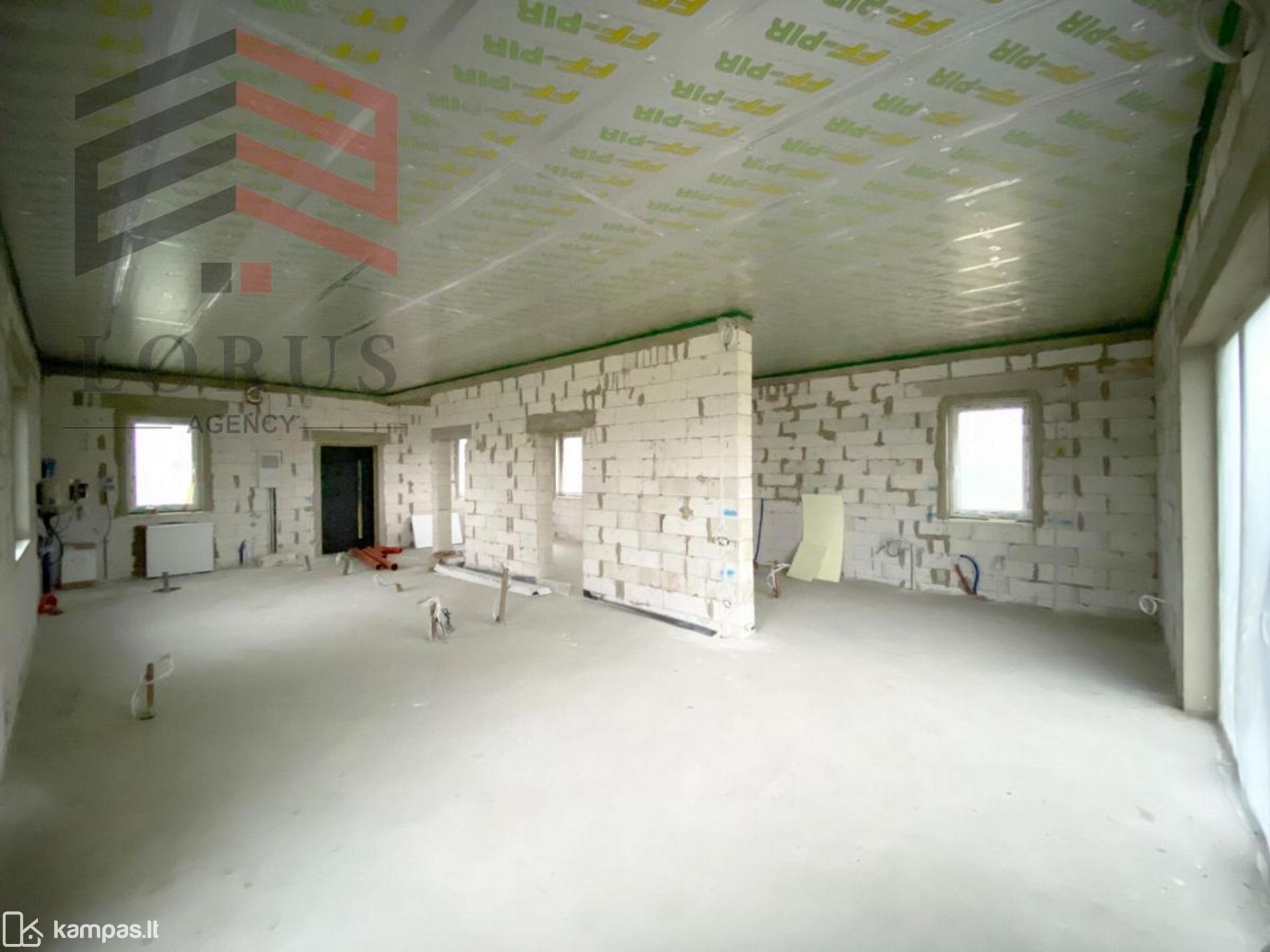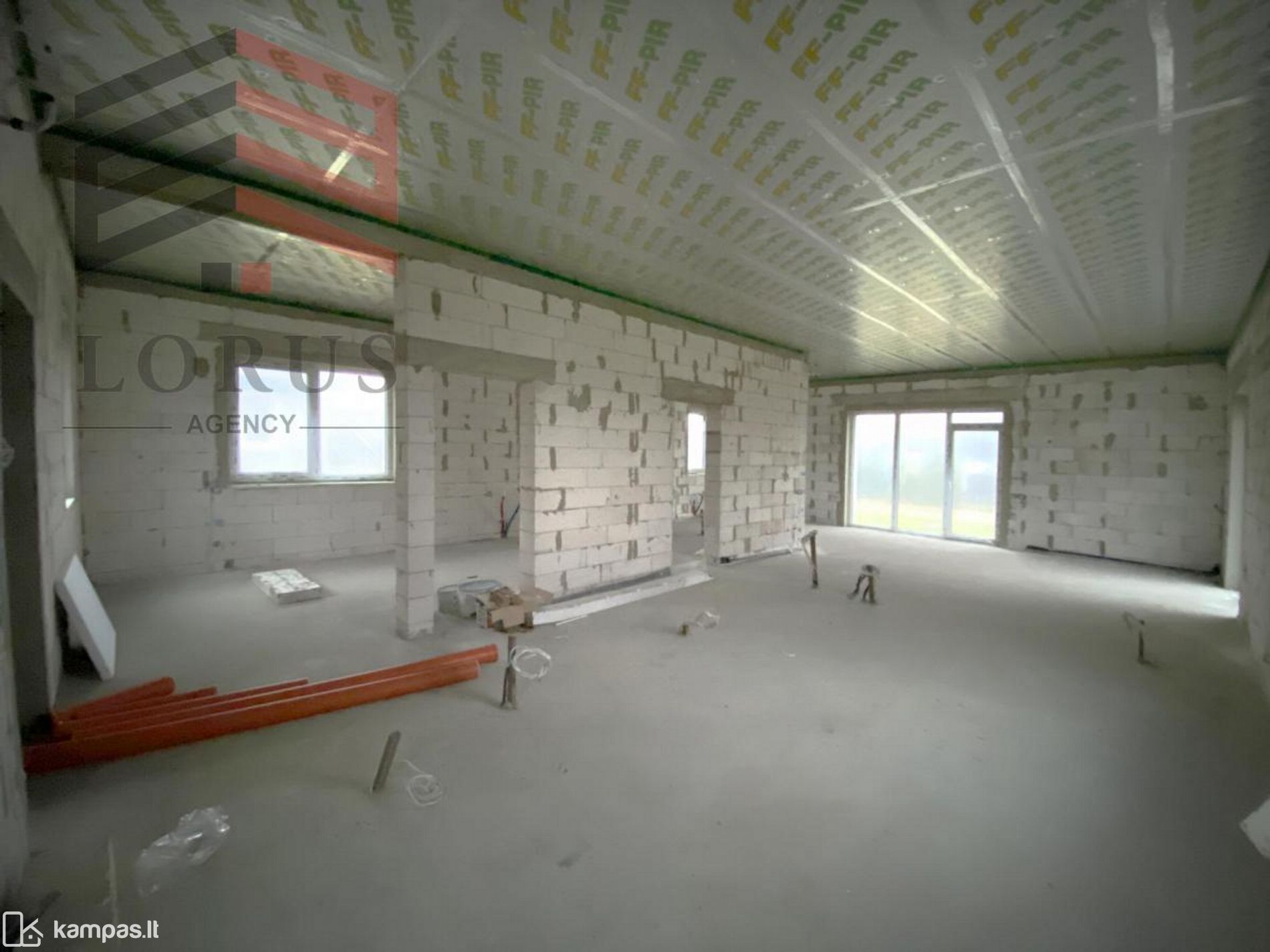 • Stogas: medinė konstrukcija, apšiltinta vata 40cm. ir FF-PIR plokšte 5 cm ;