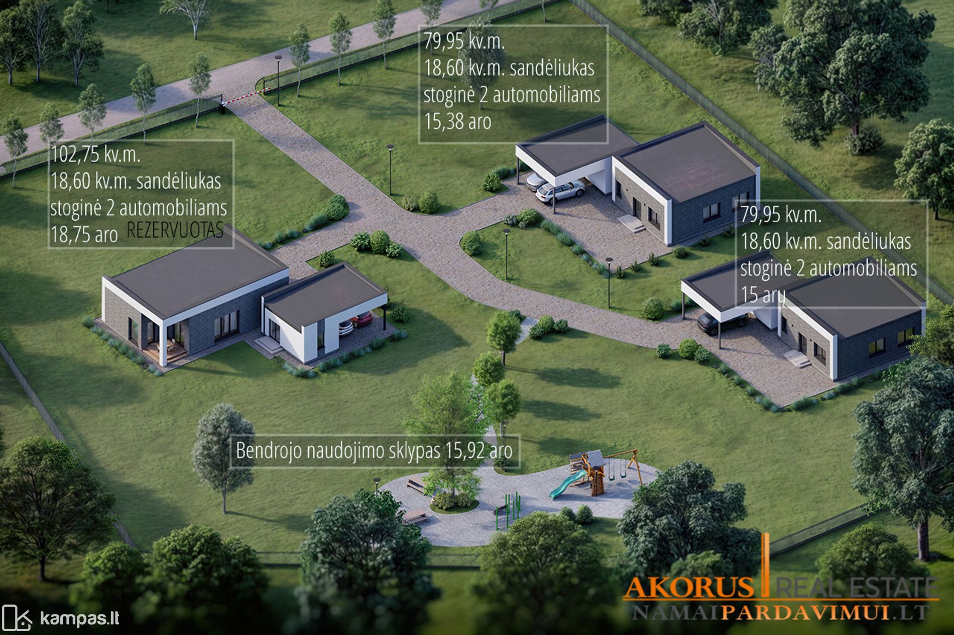 - kiekvienam namui po 18,60 kv.m. sandėliuką ir stoginę 2 automobiliams;