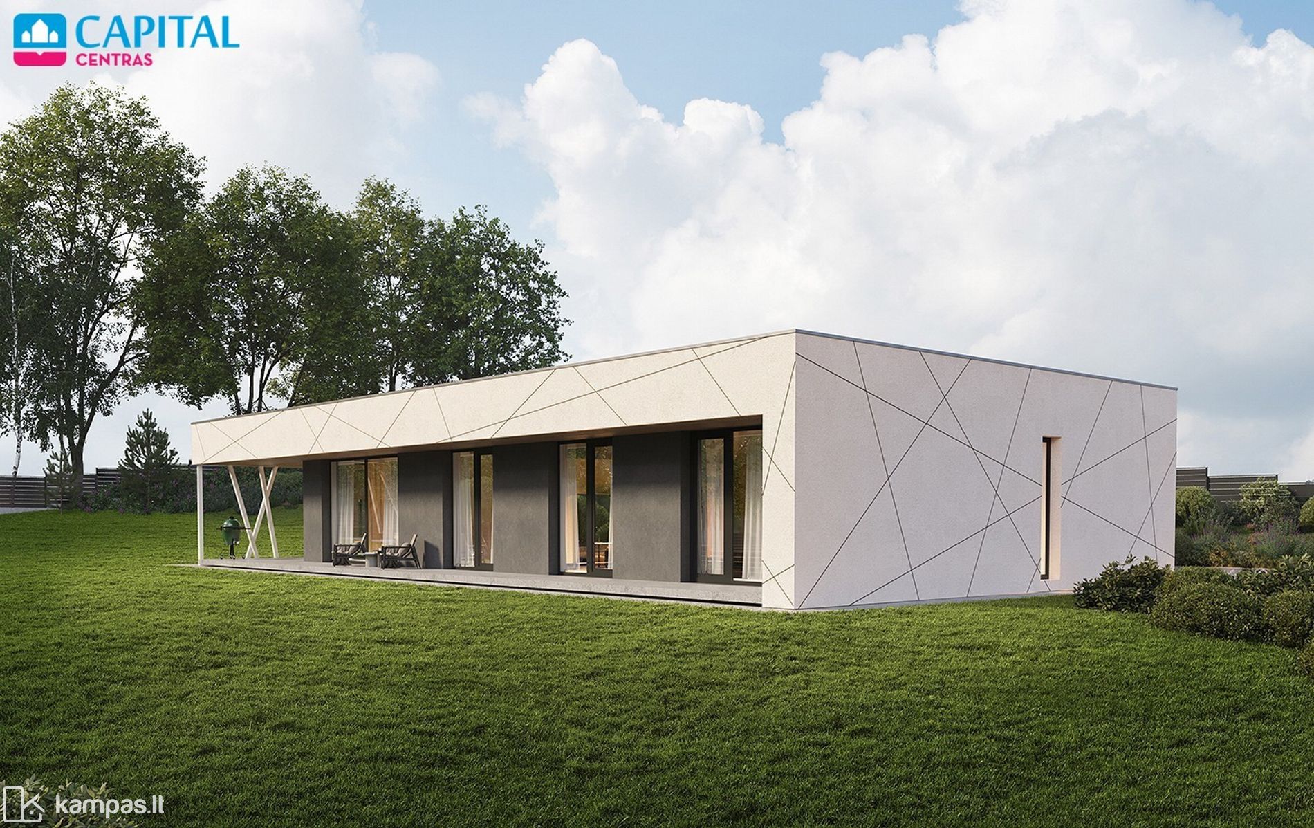 Namas išsiskiria moderniu, patogiu išplanavimu ir estetiška išorės apdaila. Pirmame aukšte numatyta šviesi, erdvi svetainė su aukštomis lubomis ir dideliais vitrininiais langais, jungiančiais vidaus erdves su terasa bei kiemu. Greta – virtuvės ir valgomojo zona, keli miegamieji, darbo kambarys bei pagalbinės patalpos, užtikrinančios patogų ir racionalų erdvės panaudojimą. Statybai naudotos aukštos kokybės medžiagos, užtikrinančios pastato tvirtumą, energinį efektyvumą ir ilgaamžiškumą.