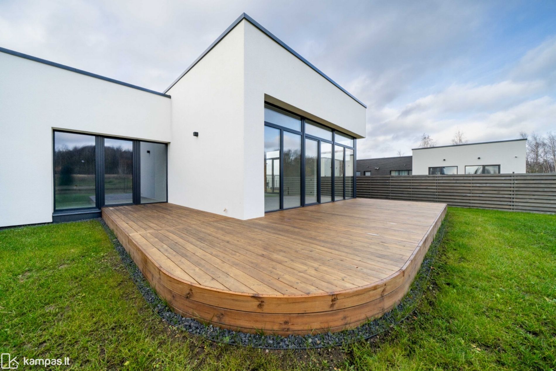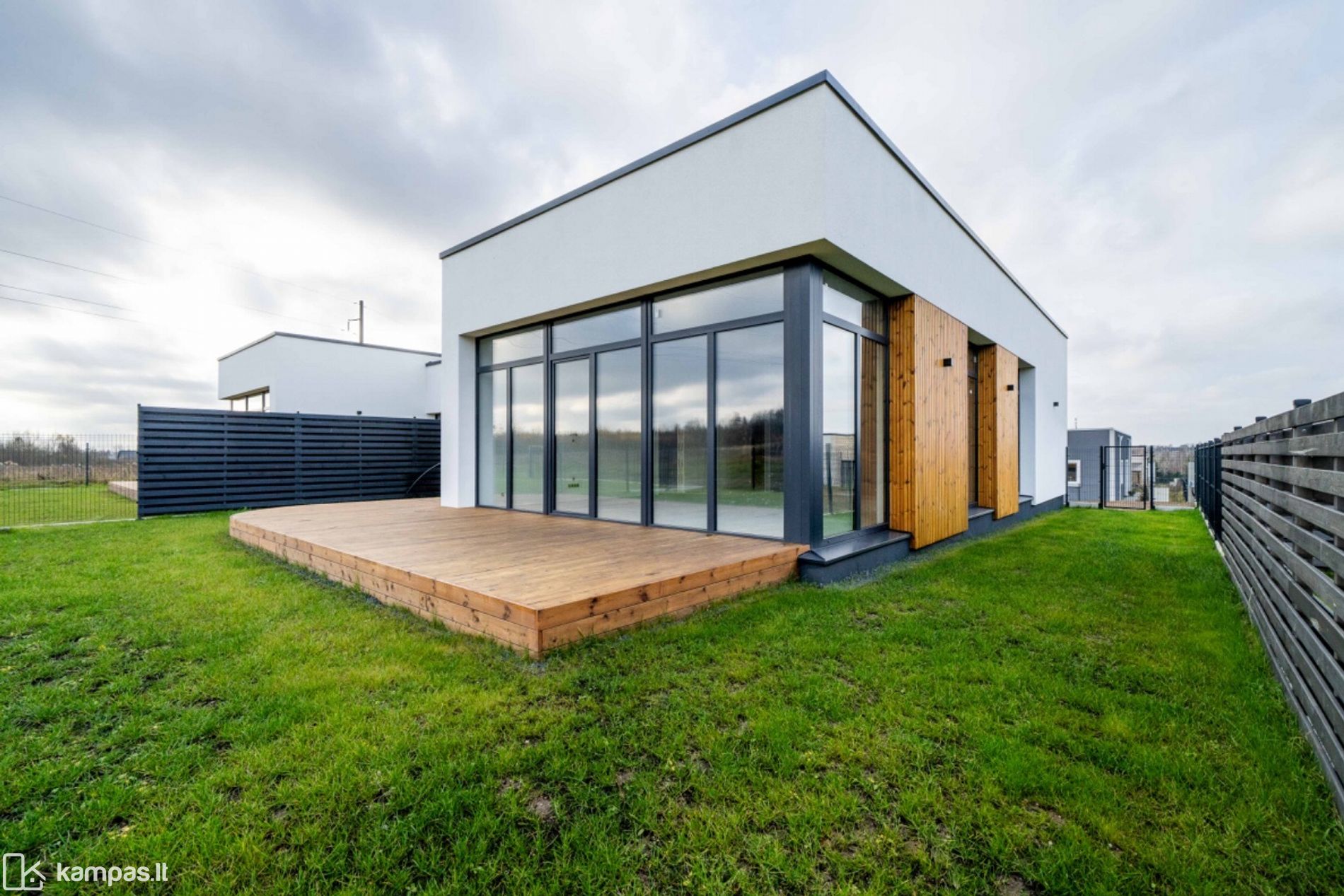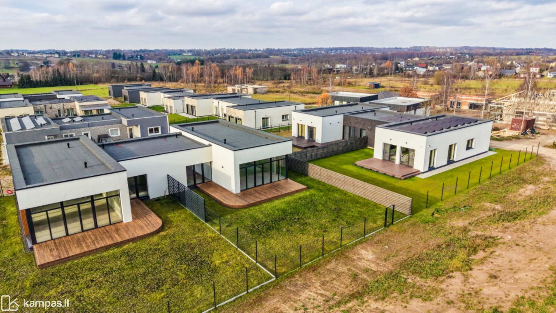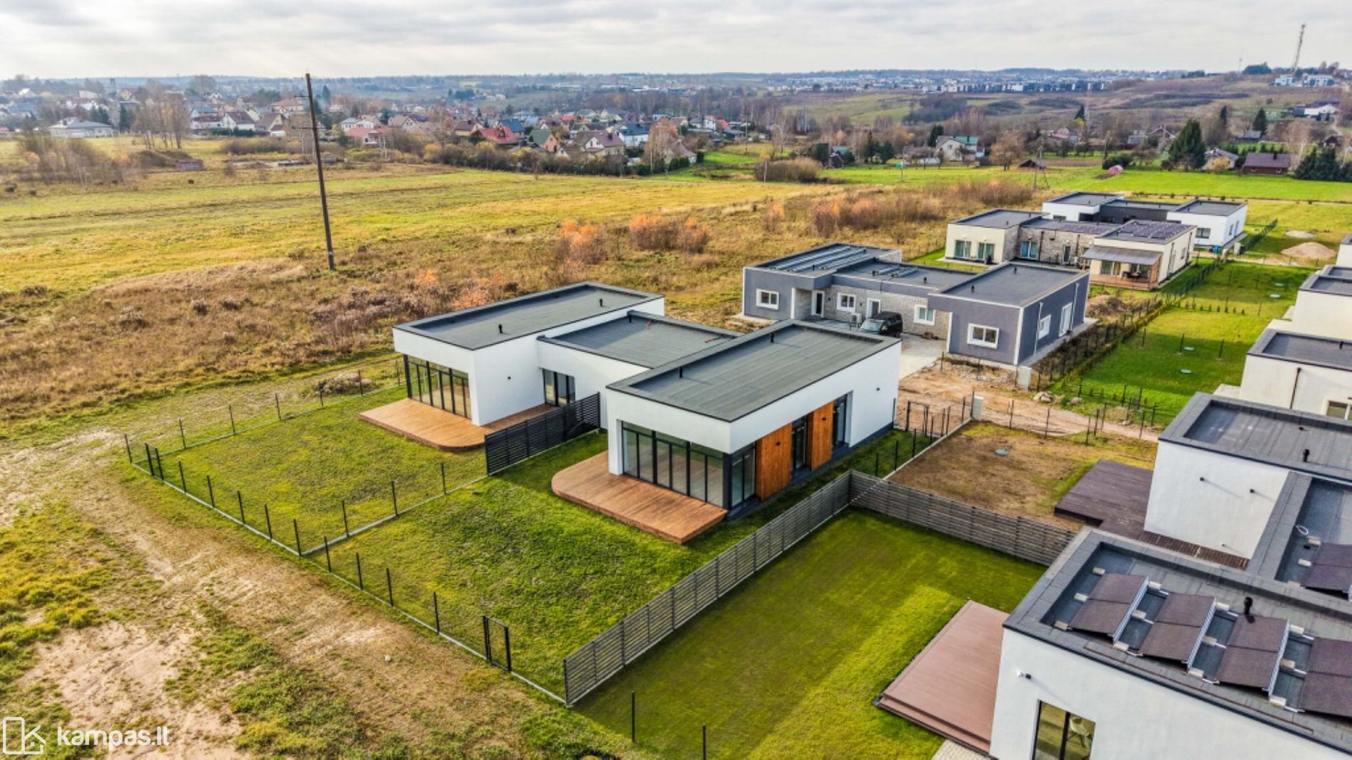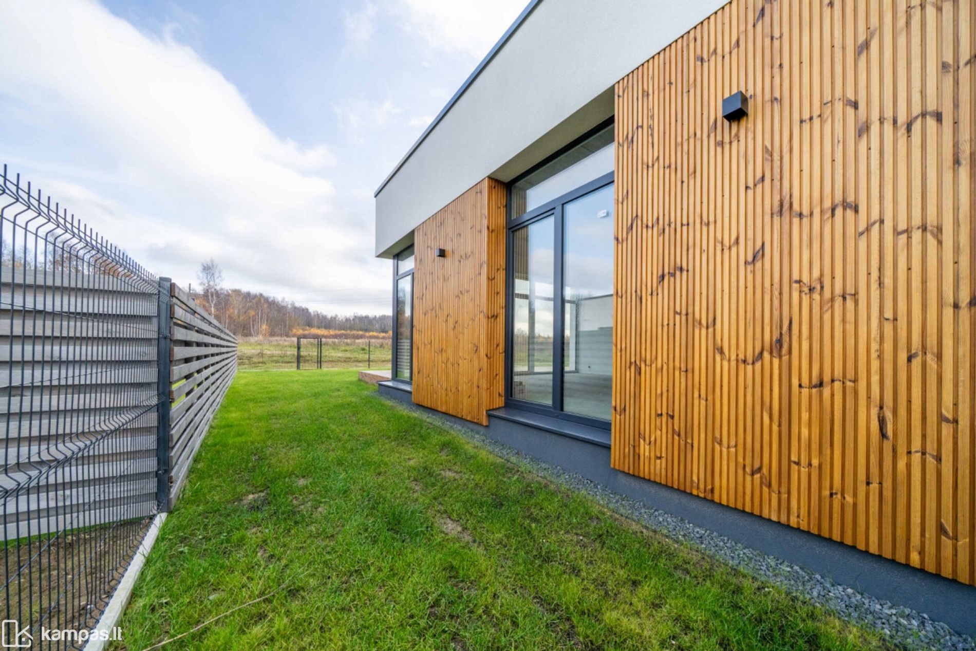 Parduodami aukštos kokybės, A++ energinio naudingumo klasės, modernios architektūros, vieno aukšto, 116 kv. m ploto, 4 kambarių dvibutis namas su 5 arų erdviu sklypu ir 3,40 m aukščio lubomis.