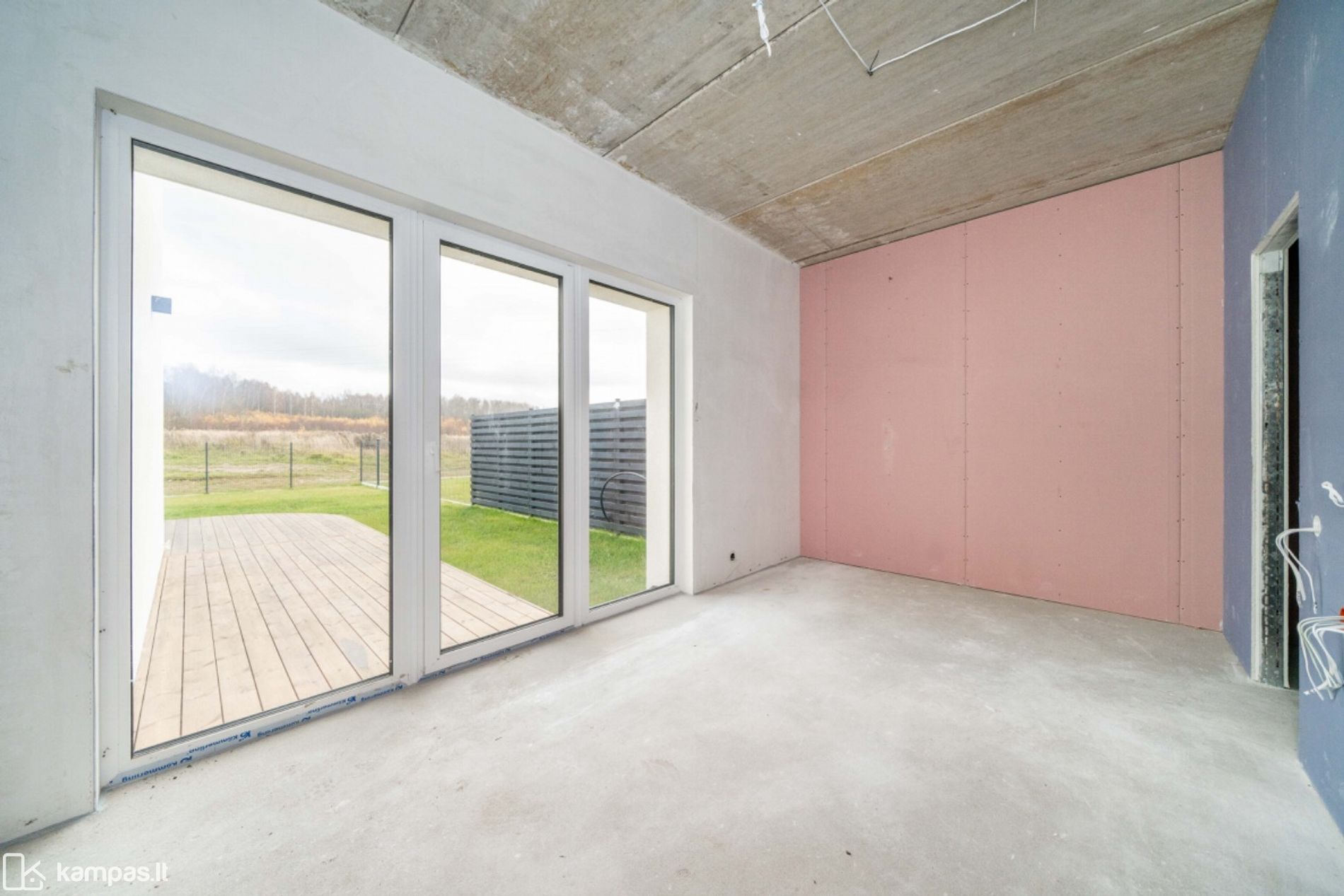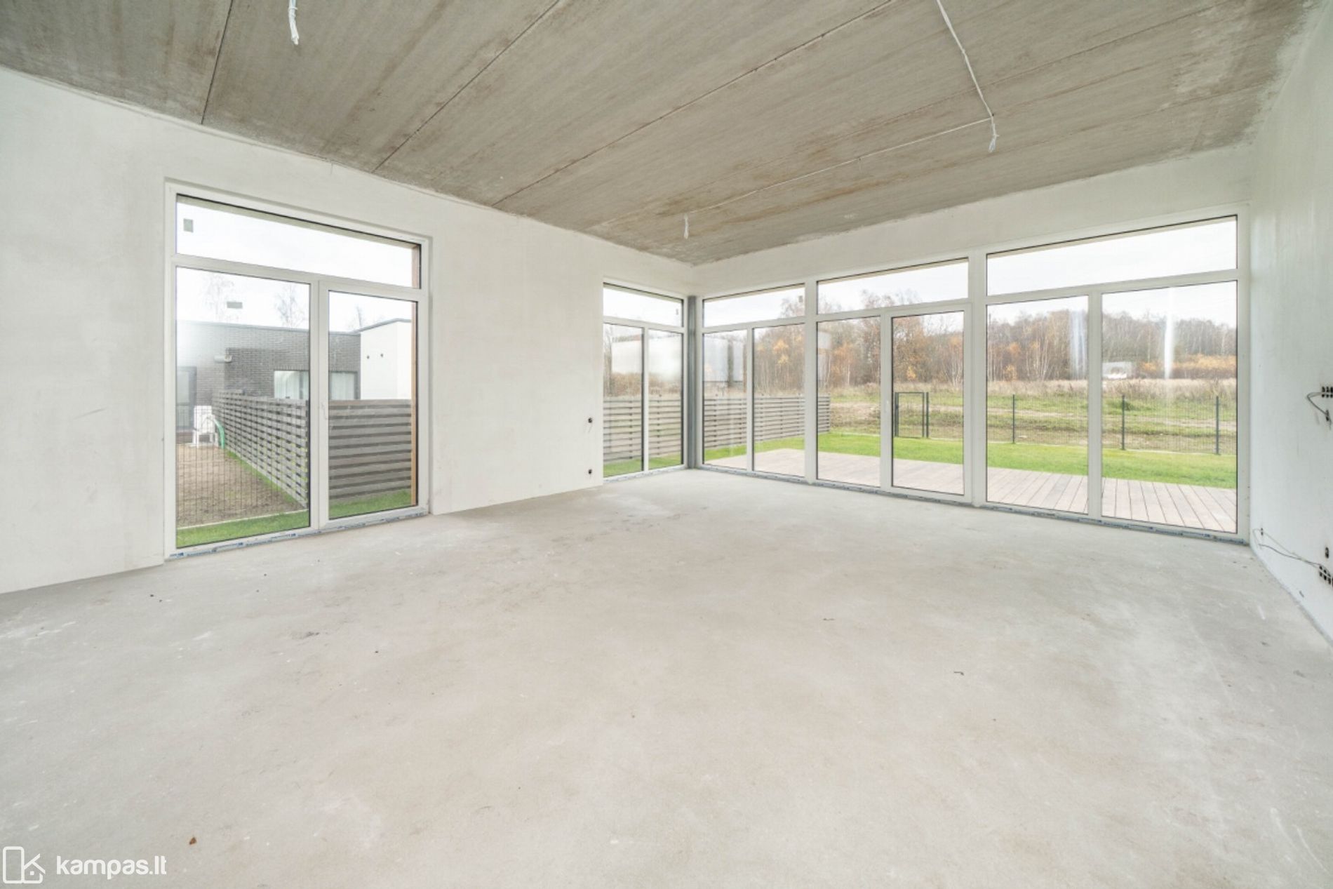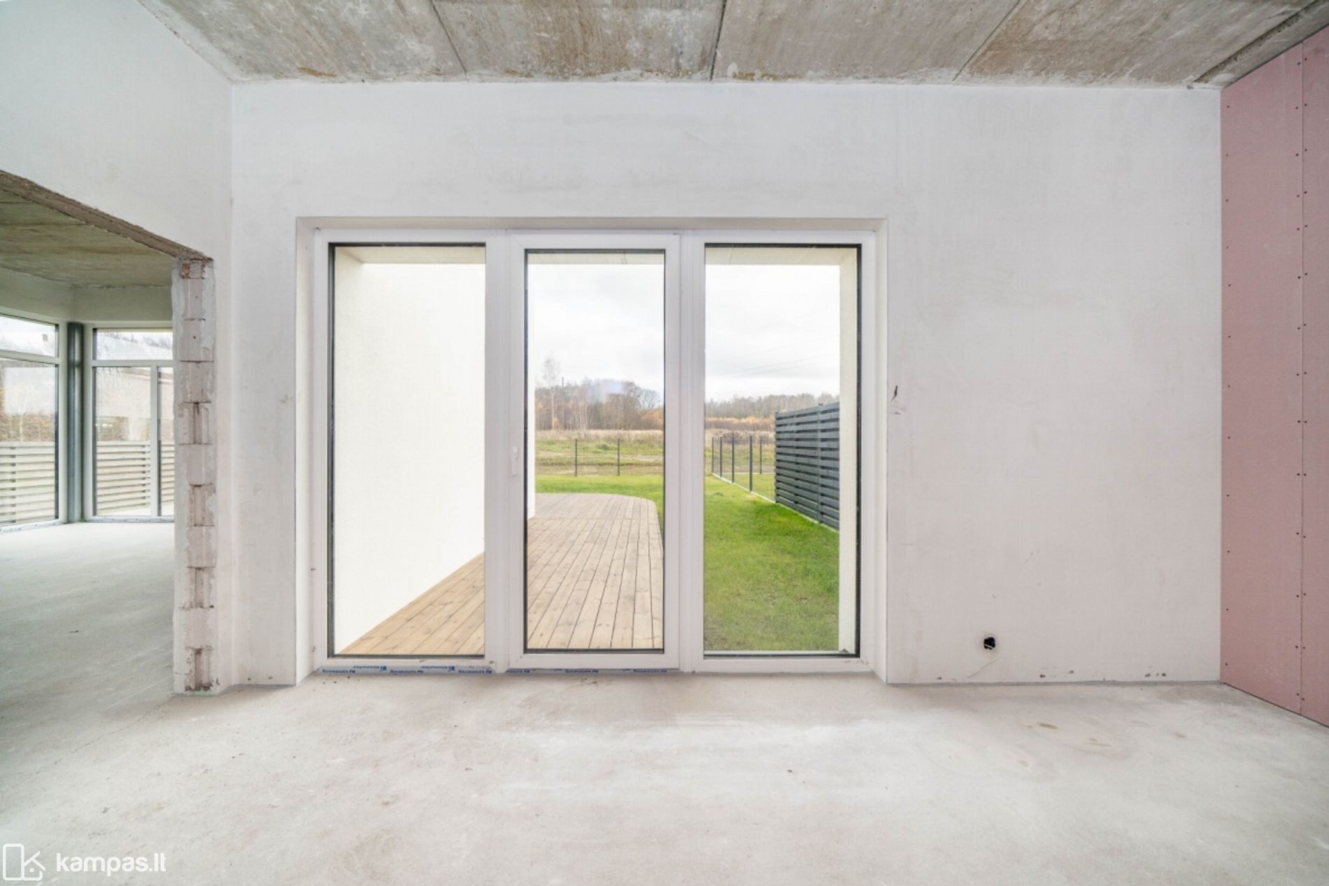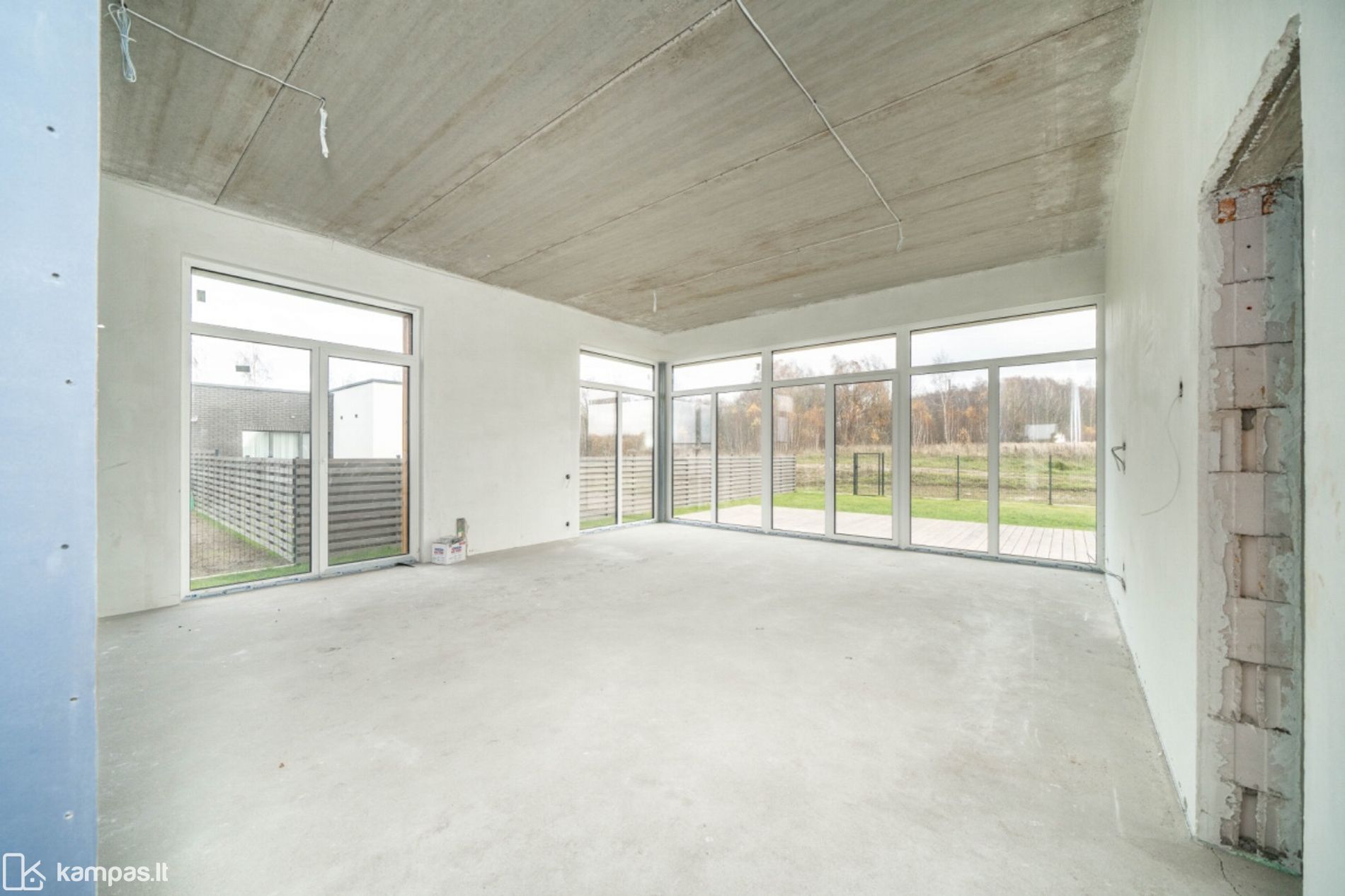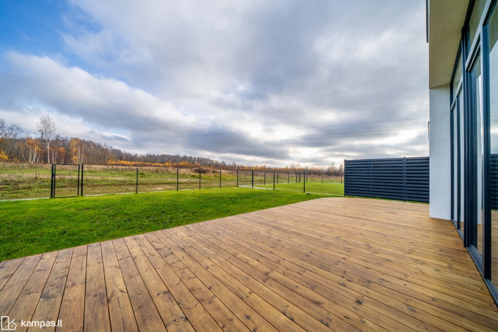 Puikiai išplanuotas 4 kambarių namas, 3 miegamieji kambariai, 2 san.mazgai, erdvi, net 44 kv.m. virtuvės ir svetainės zona, kurioje dideli vitrininiai langai. Svetainė orientuota į pietinę pusę, iš kurios patenkama į terasą.