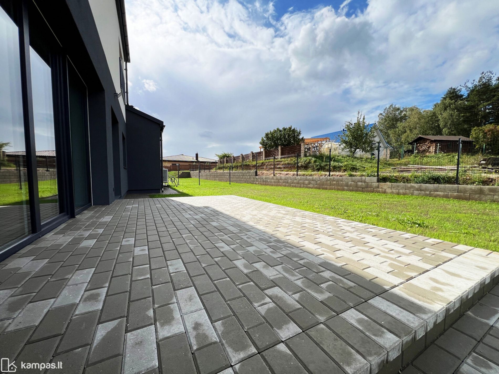 • Sutvarkytas ir aptvertas kiemas, išklotas trinkelėmis
