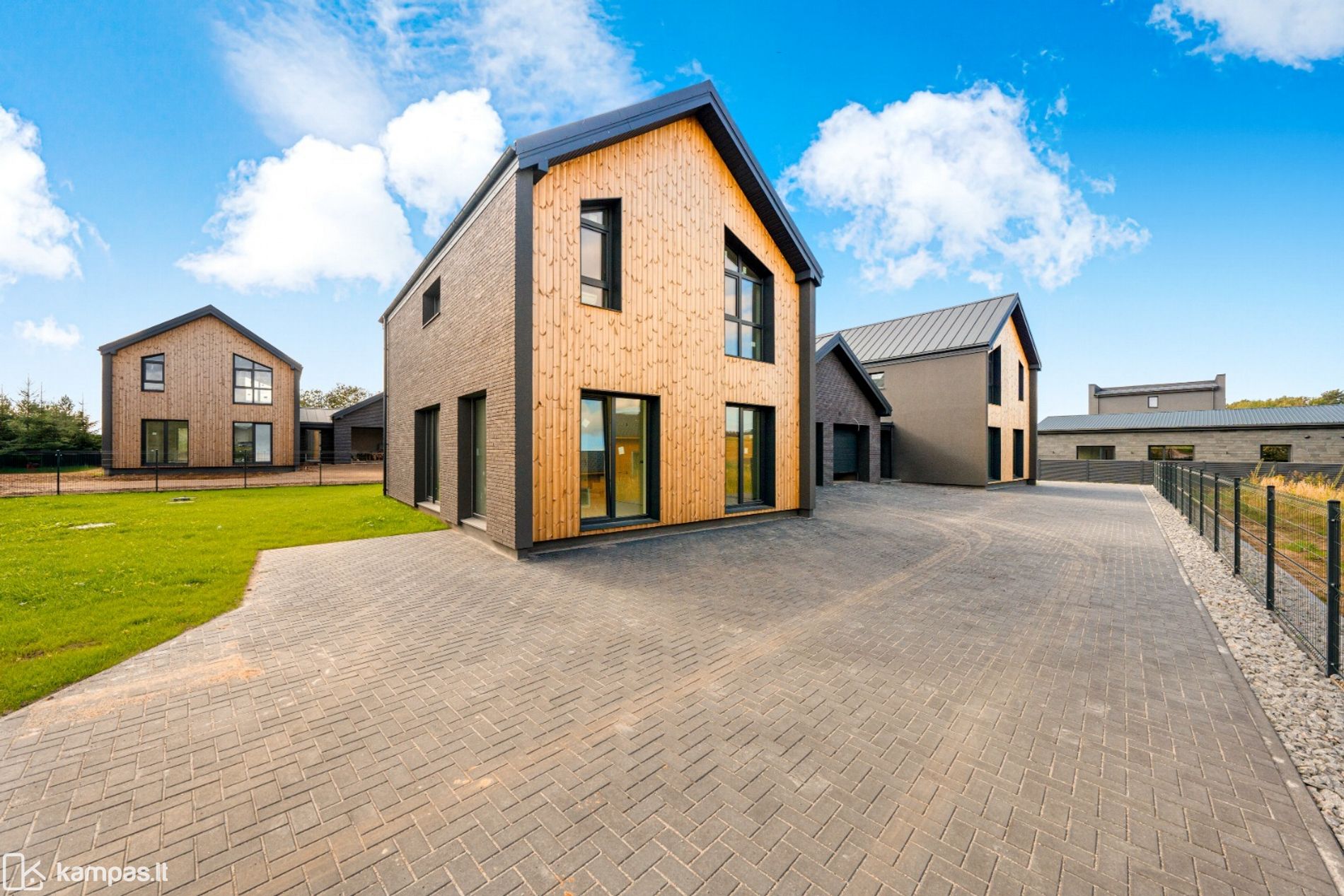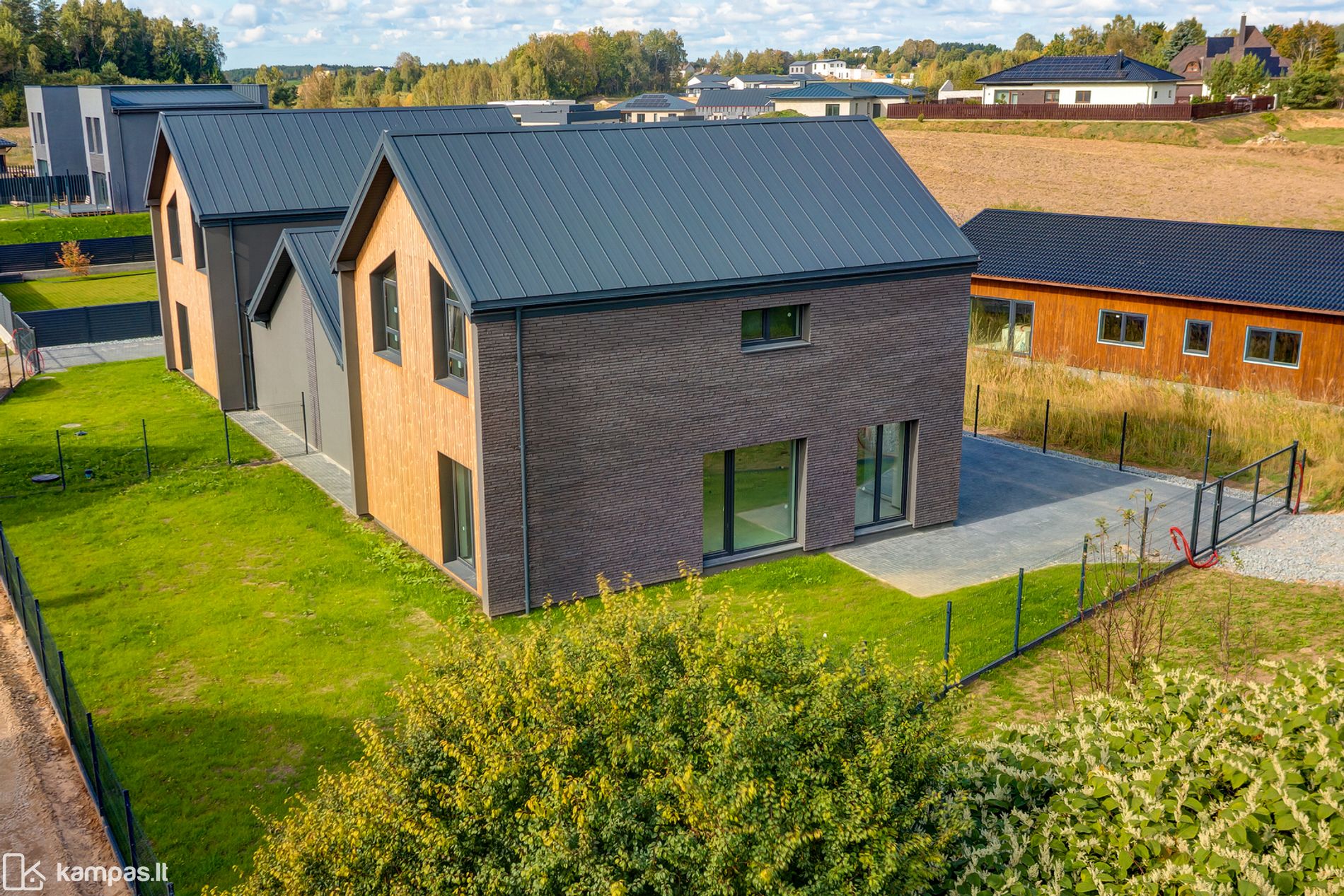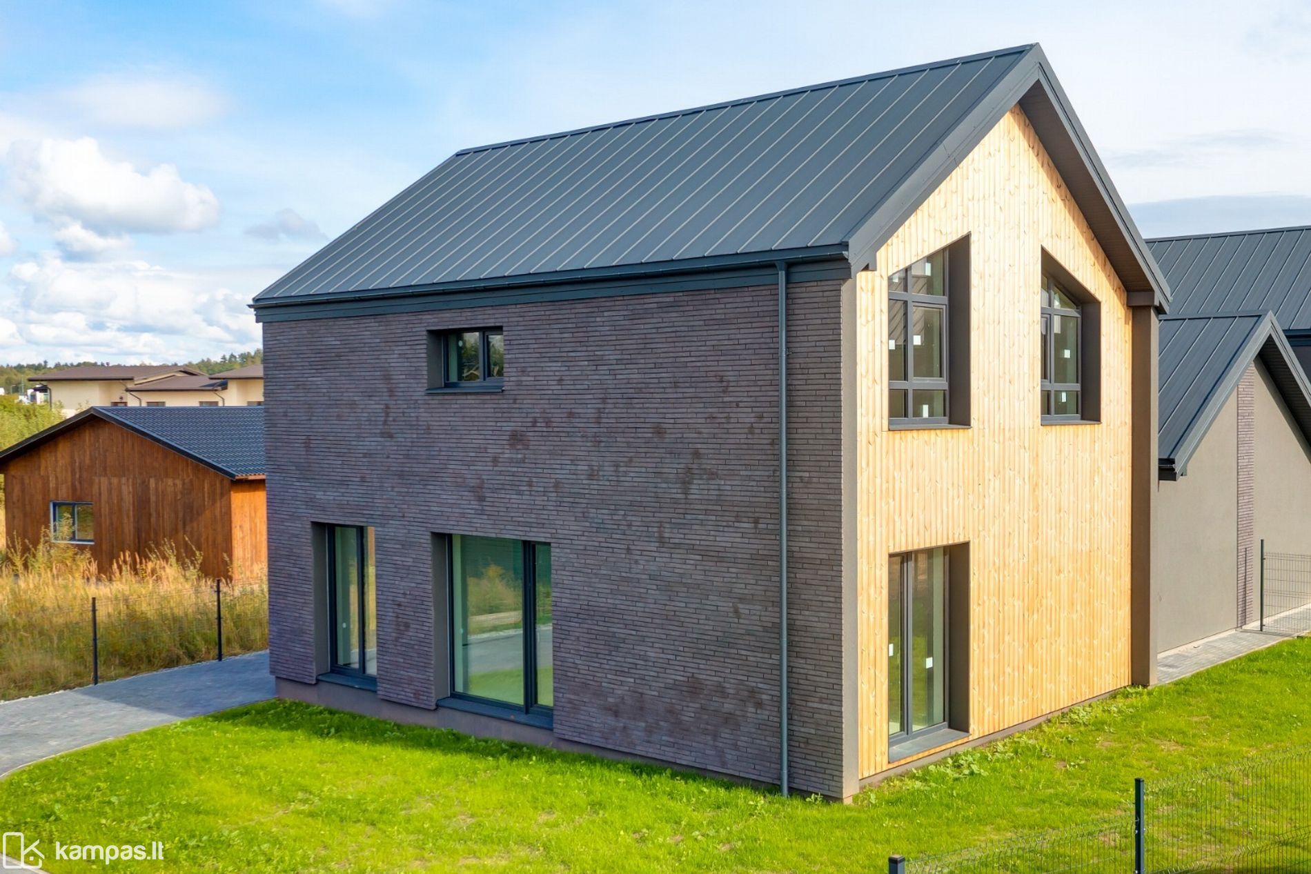 - Išskirtinė architektūra – dideli langai, klinkerio ir termintos medienos apdailos detalės, numatyta vieta erdviai terasai.