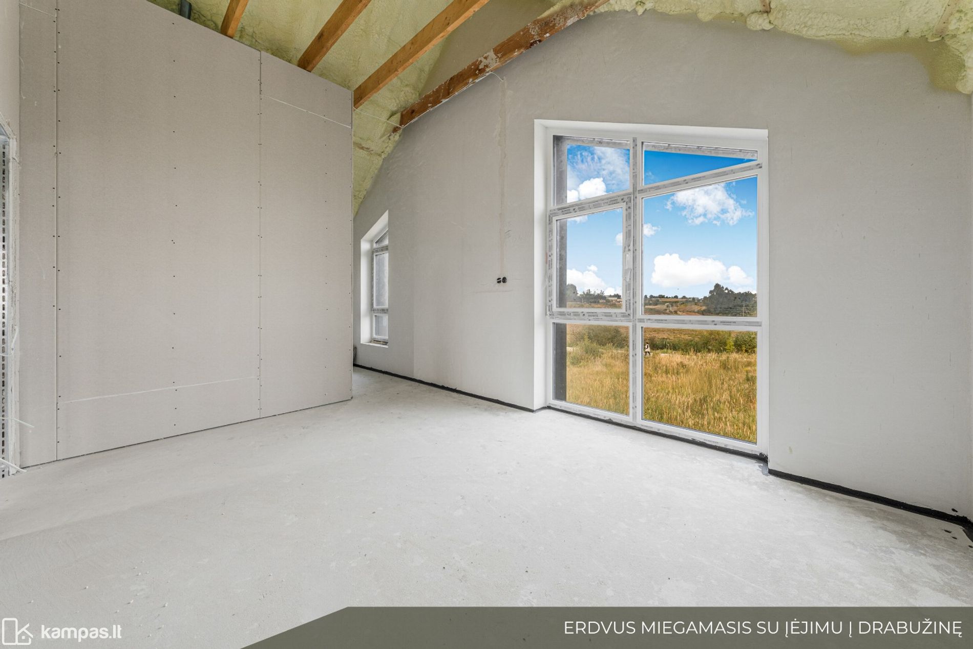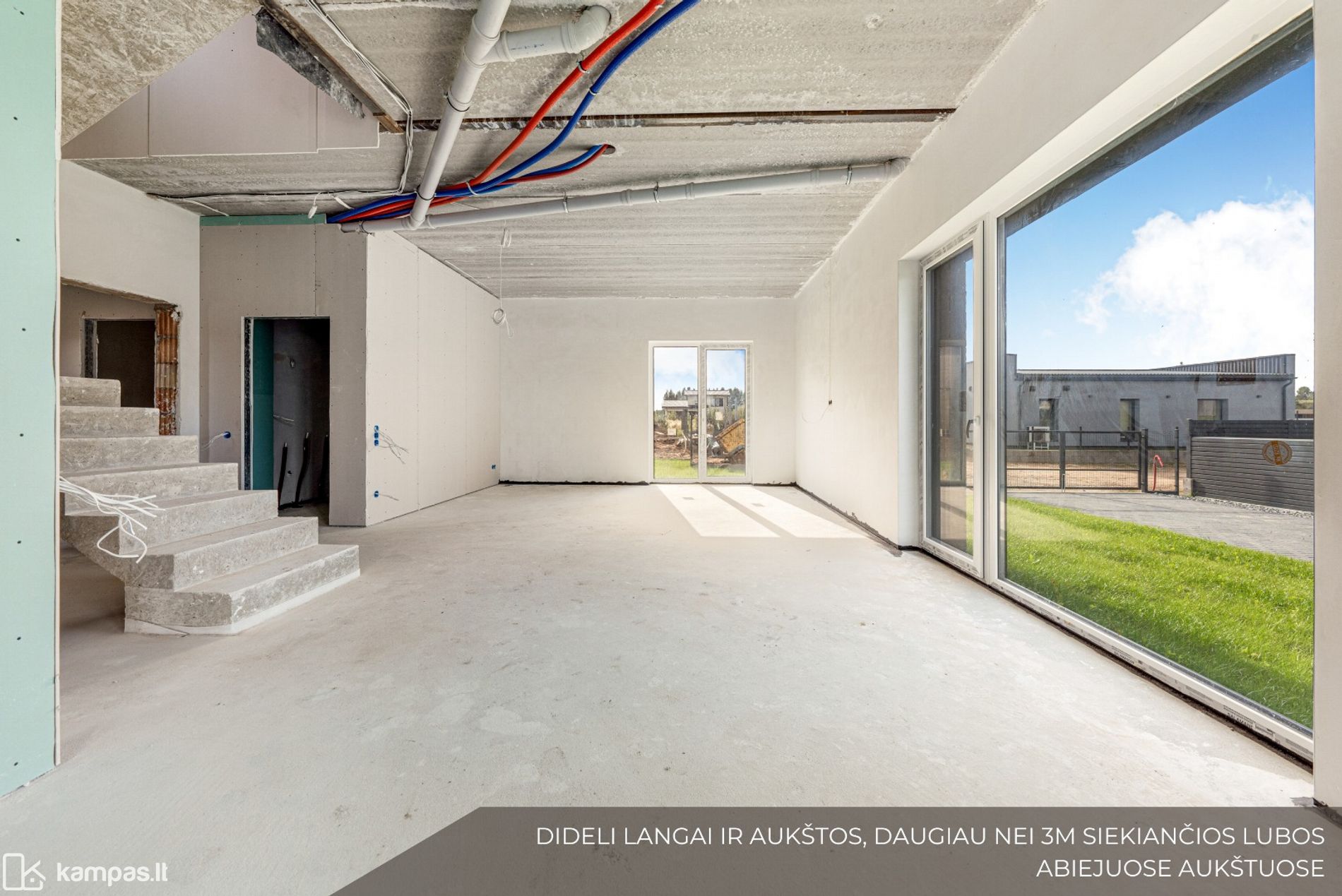 - Aukštos lubos visame name.