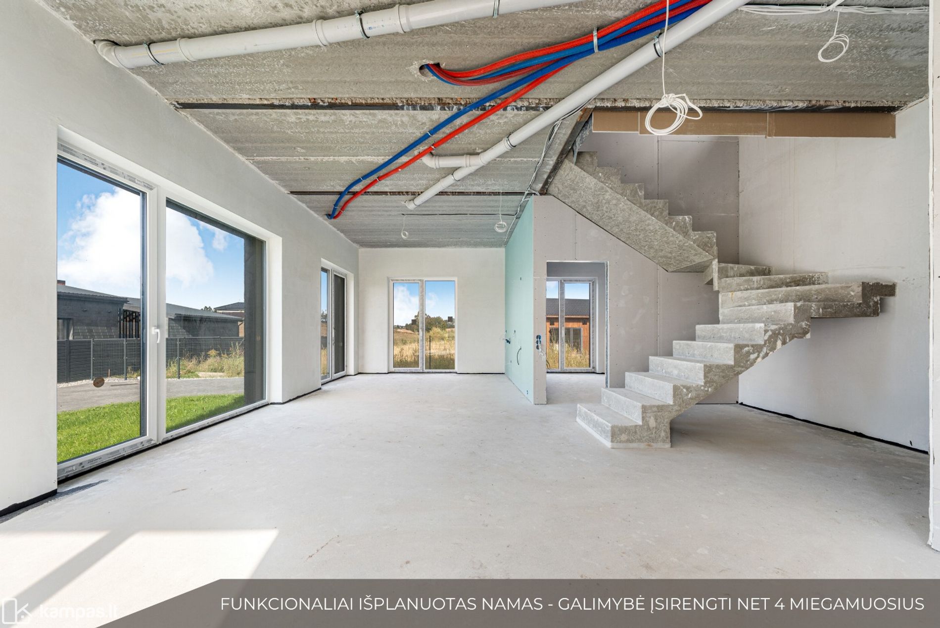 - Išvedžiotas grindinis šildymas, grindys išbetonuotos.