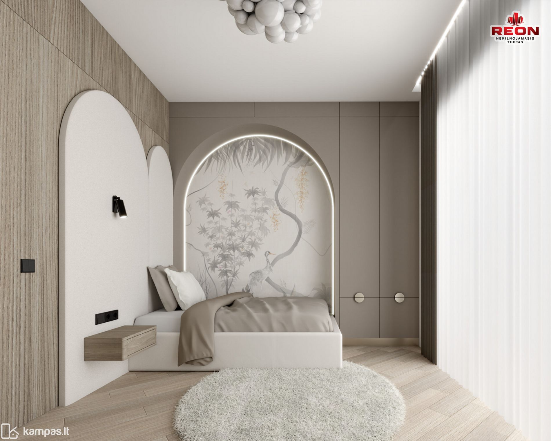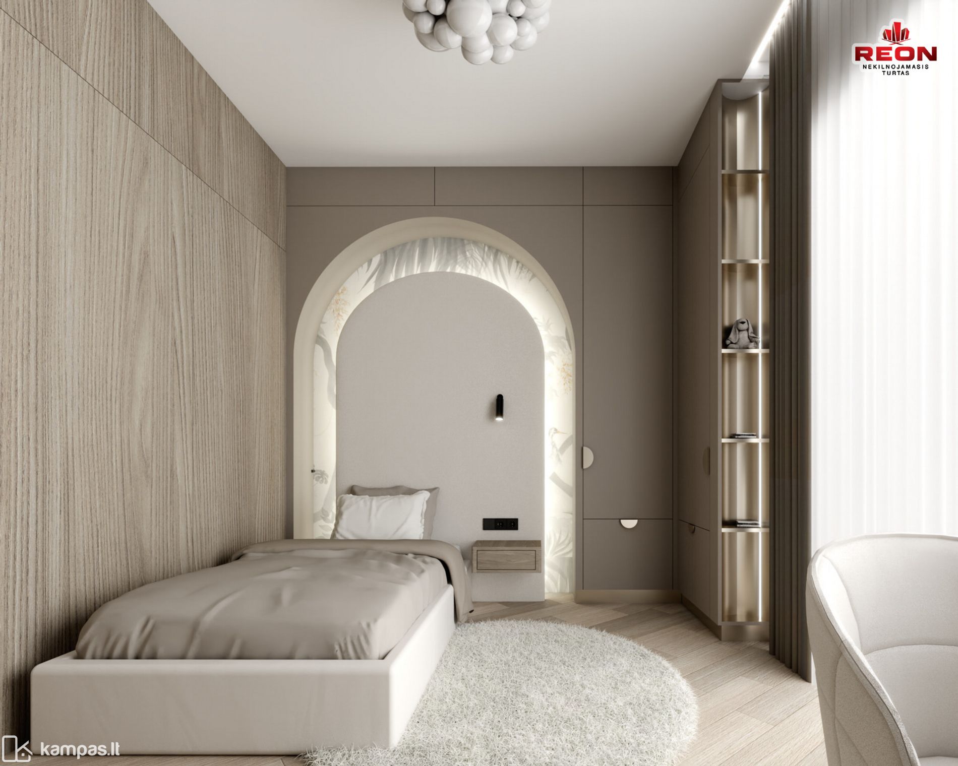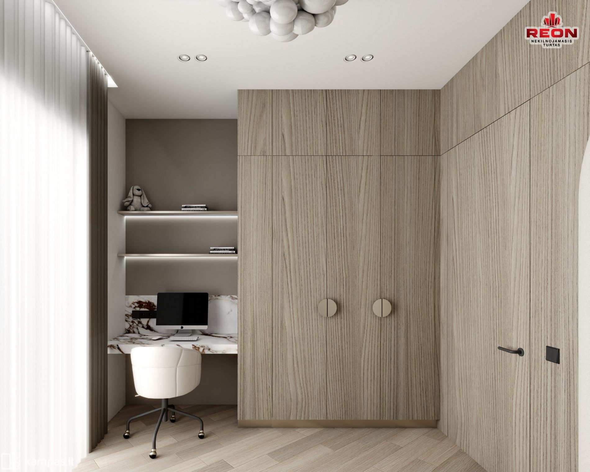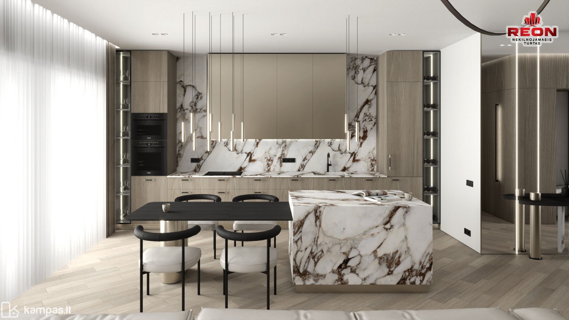 Neutralios spalvos, integruoti apšvietimo sprendimai, natūralaus medžio tekstūros bei prabanga alsuojanti akmens apdaila sukuria harmoningą ir išgrynintą gyvenamąją erdvę. Čia kiekvienas baldas, šviestuvas ir apdailos elementas tarpusavyje dera kaip vientisa dizaino kompozicija.