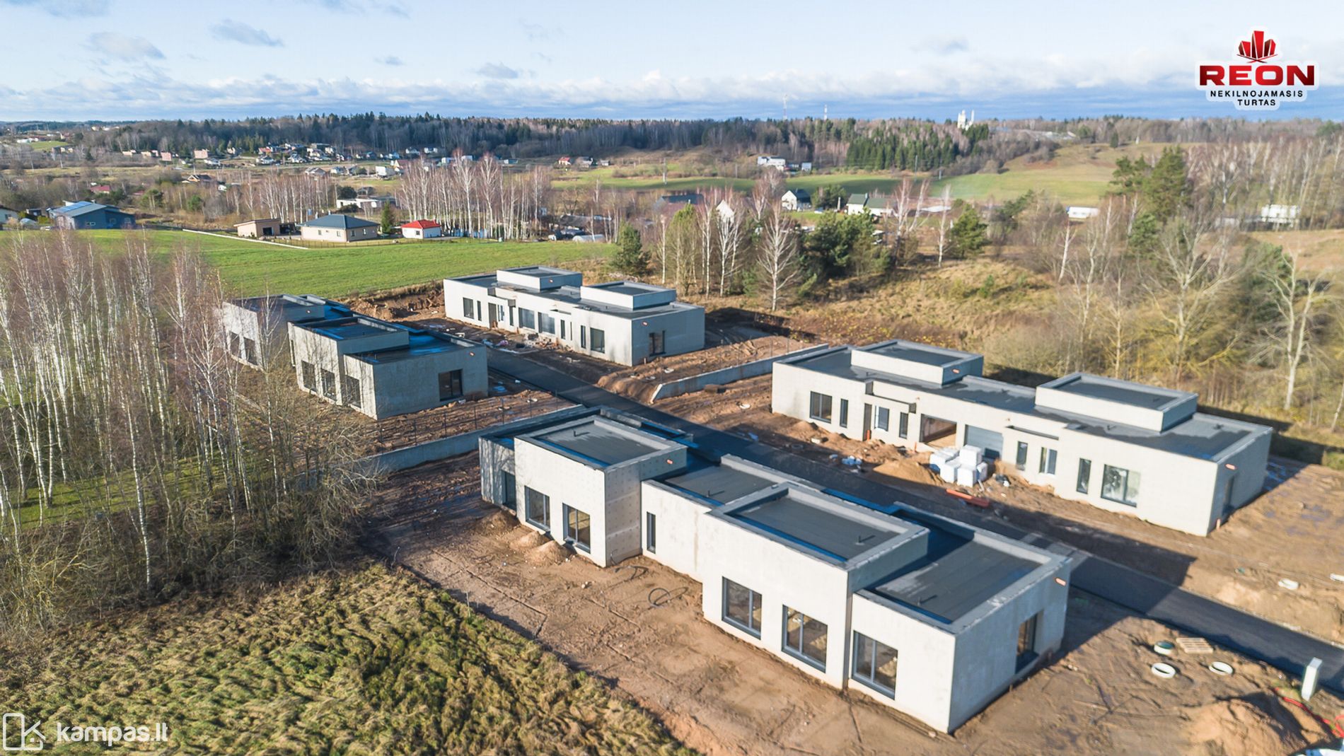 Vilniaus pašonėje, ramioje ir gražioje vietoje, 6 dvibučių namų kvartale, dideliuose 15a sklypuose, parduodami aukštos kokybės, A++ energinio naudingumo klasės, modernios architektūros, vienaukščiai dvibučiai namai. Kvartalo gyventojai asfaltuotomis gatvėmis savo namus galės pasiekti 3 skirtingais keliais – A2 pro Klevinę, A14 pro Didžiąją Riešę arba pro Lindiniškes. Kelios minutės automobiliu iki prekybos centrų ir parduotuvių, šalia vaikų darželis.
