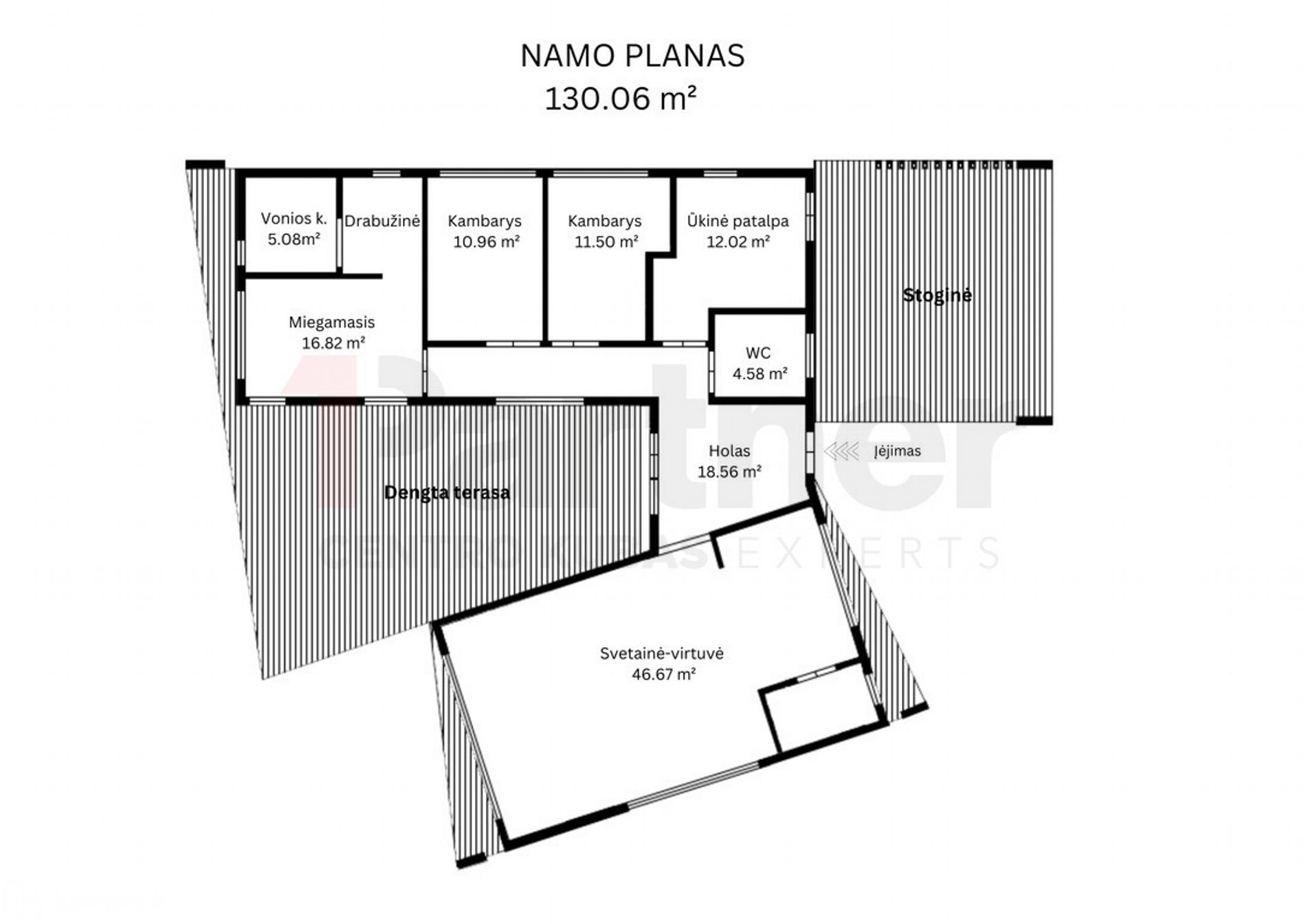 • Puikiai suplanuotas: yra 3 miegamieji kambariai, erdvi virtuvė–svetainė, du vonios kambariai, erdvus holas ir kelios pagalbinės patalpos;