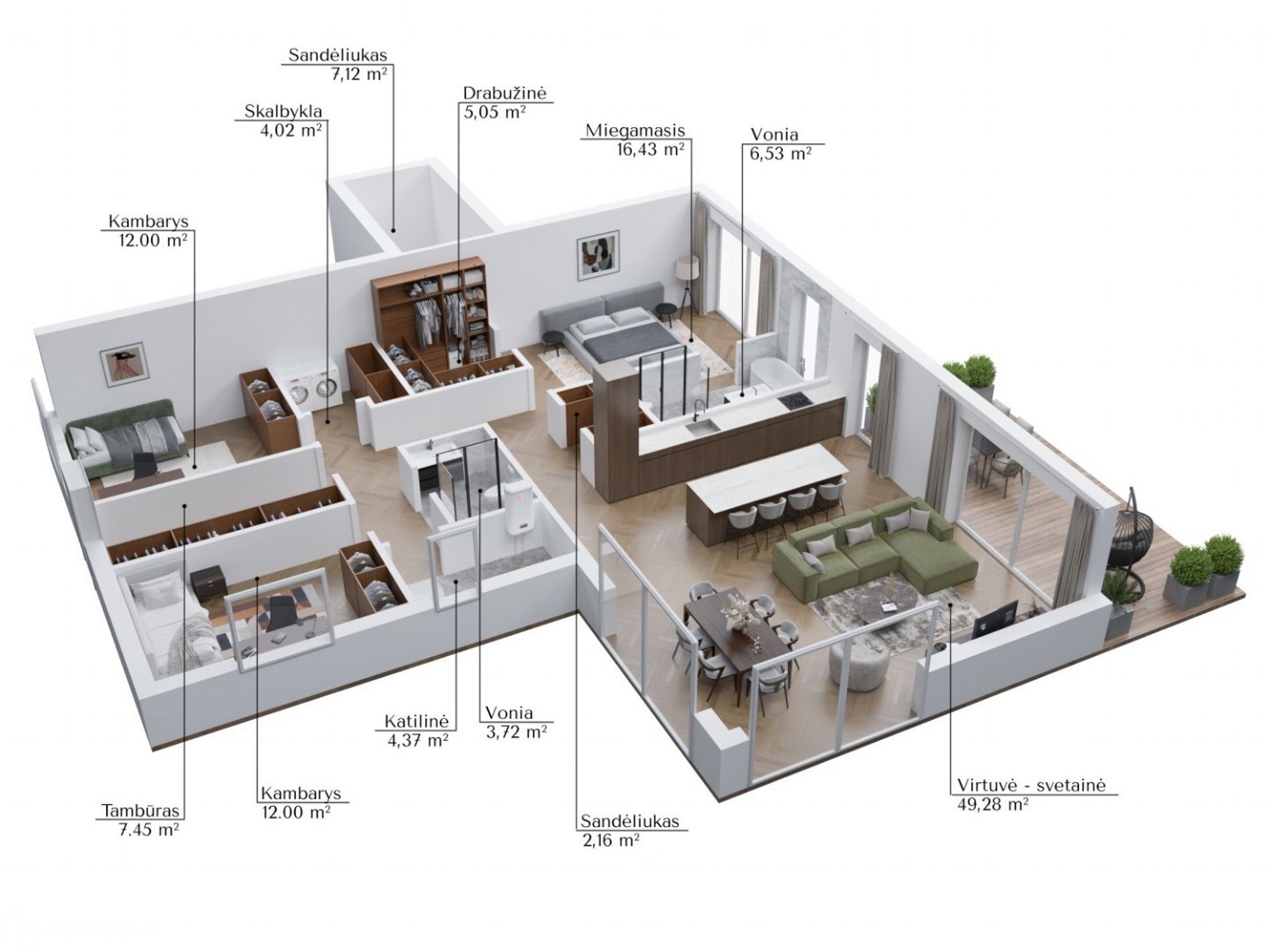 • Namas sujungtas per sandėliuką ir stoginę – jokių kaimynų garsų per sieną;
