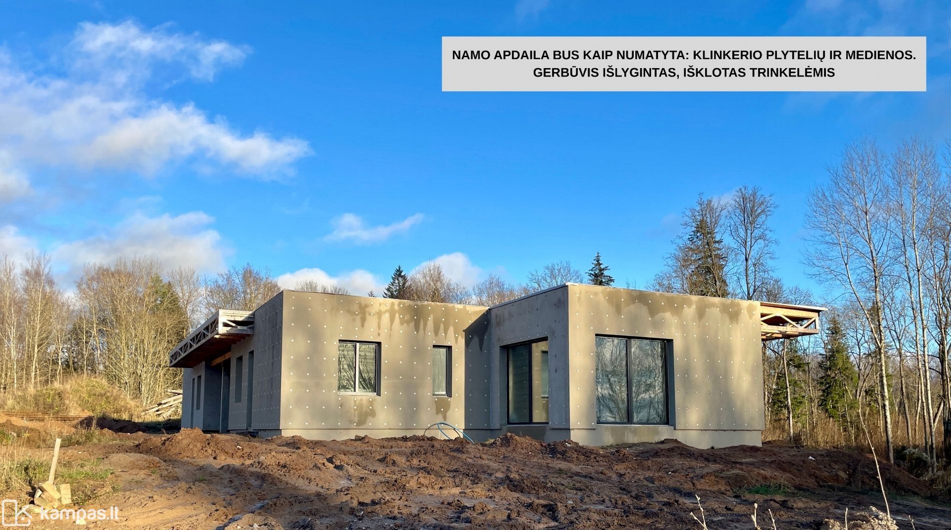 • Fasadas: klinkerio plytelės + medinės dailylentės (ventiliuojamas);