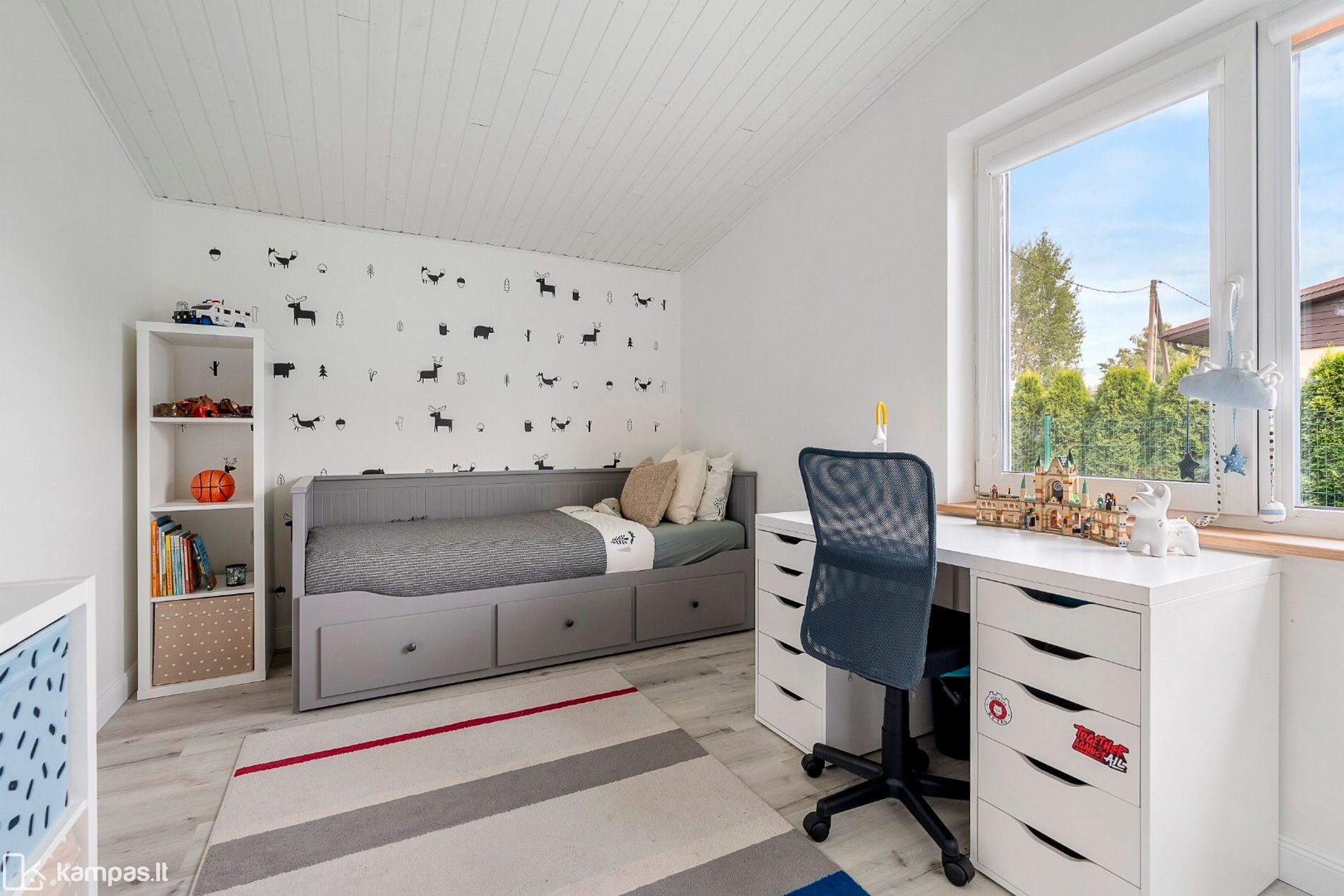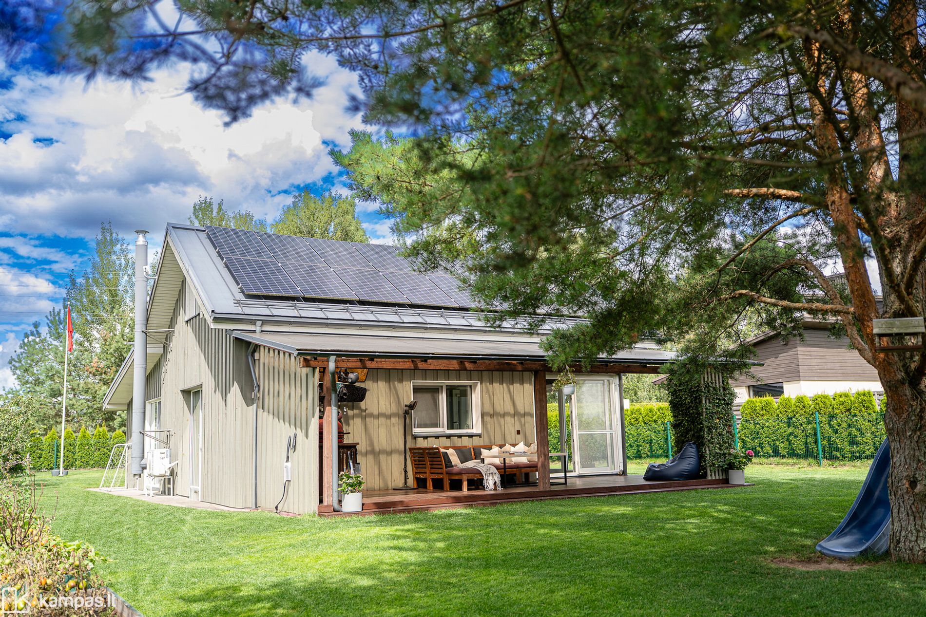 Šis 2018 m. statybos namas – puikus pasirinkimas šeimai, ieškančiai jaukaus, ekonomiško ir šiuolaikiškai įrengto būsto šalia gamtos. Namas atitiks daugumos pirkėjų pagrindinius keliamus reikalavimus- lygus sklypas, pasėta veja, privatumo jausmą suteikia aplink susodintos tujos, o į kiemą pateksite pro plačius automatinius vartus, kur jūsų lauks sumontuota 40m2 stoginė su erdvia, trinkelėmis grįsta, aikštele. Pirties mėgėjai galės džiaugtis atskiru svečių namelių su aukšto lygio pečiumi, nakvynei pritaikyta erdve bei atskiru vonios kambariu. Galinėje kiemo pusėje sumontuota terasa orientuota pietų kryptimi su nuostabiu vaizdu į kieme augančias bandžias pušis ir užtikrintu privatumo jausmu. Ūkio reikmės priemones galėsite laikyti atskirame lauko sandėliuke, o mažas išlaikymo sąnaudas užtikrins ant stogo sumontuota 10 kW saulės elektrinė. Iki Žaleso ežero vos 700 metrų, tad žvejybos ar vandens pramogų mėgėjai taip pat galės mėgautis širdžiai maloniomis veiklomis.
